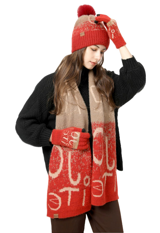 Wander Agio Winter Hat Scarf Glove Set for Women Beanie Hats Scarves and Gloves Womens Polar Fleece 3-Sets Christmas Red 1