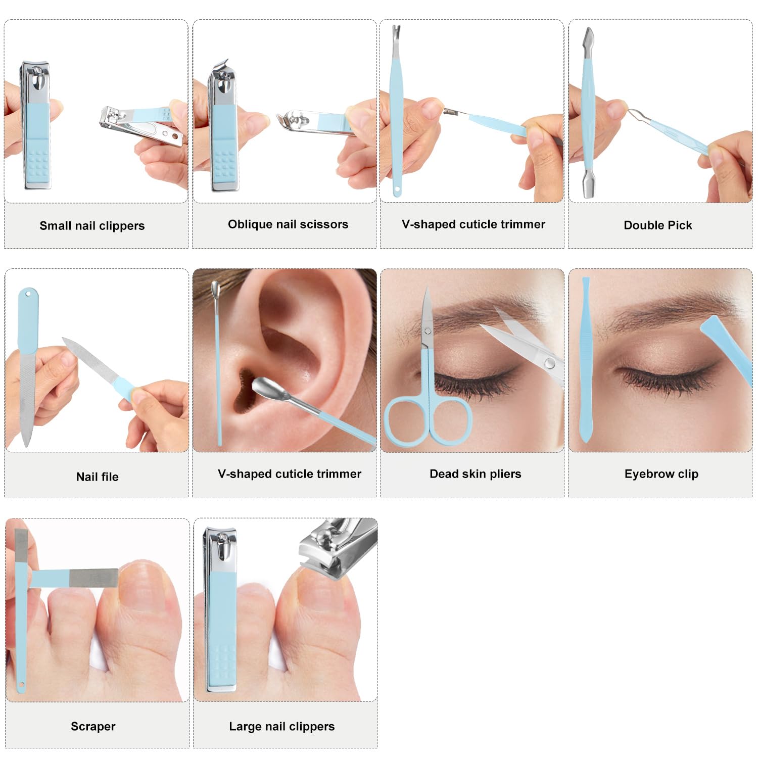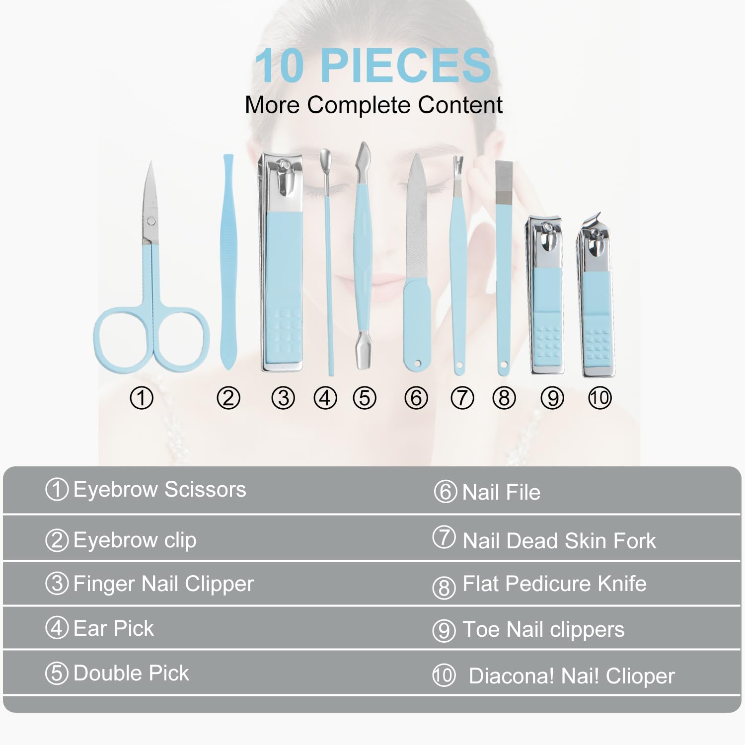 10 Piece Nail Kit, Manicure Kit, Nail Care Kit For Women, Manicure Pedicure Set, Nail Clippers Toenail Clippers Kit, Professional Manicure Kit Pedicure Kit, with Luxurious Travel Case - Light Blue