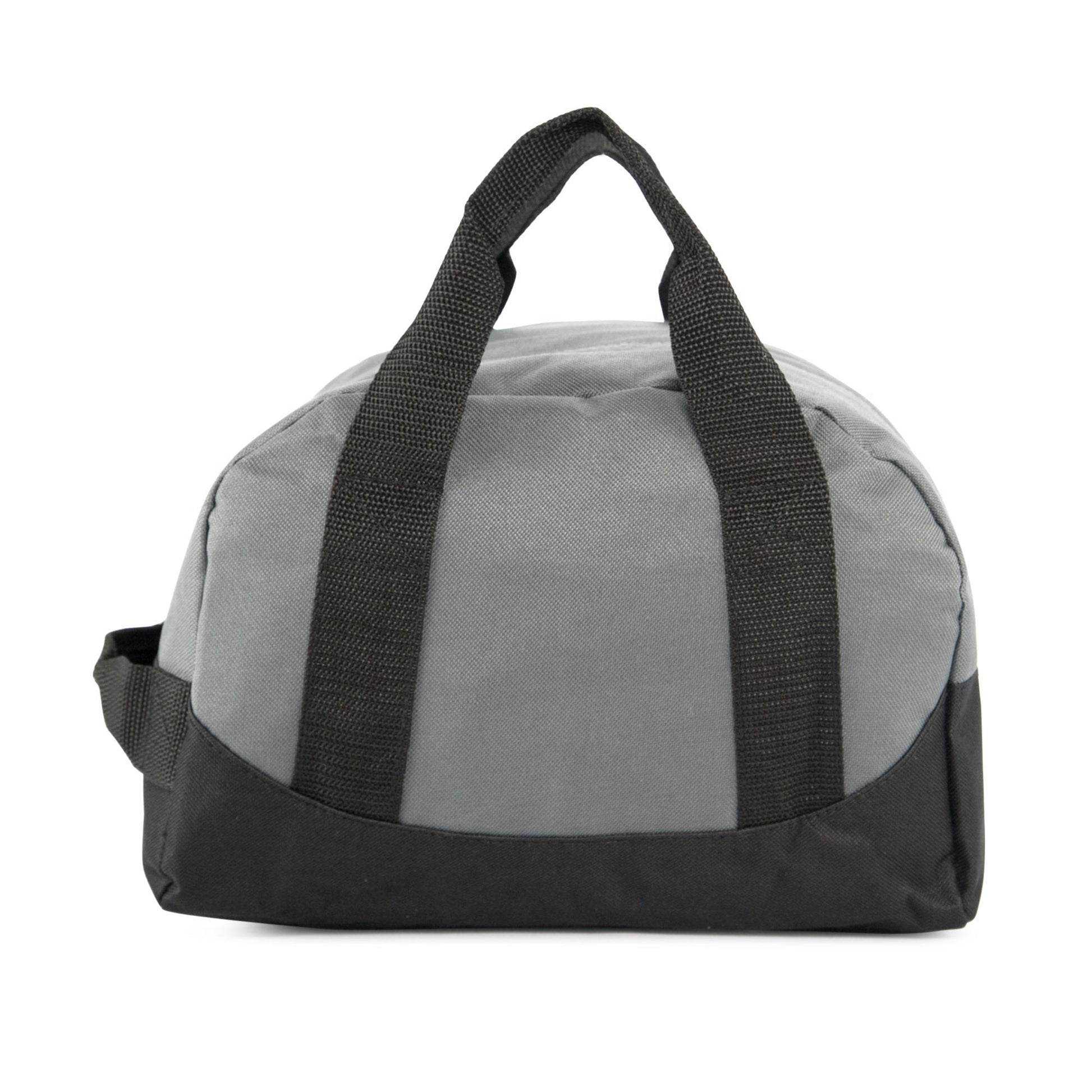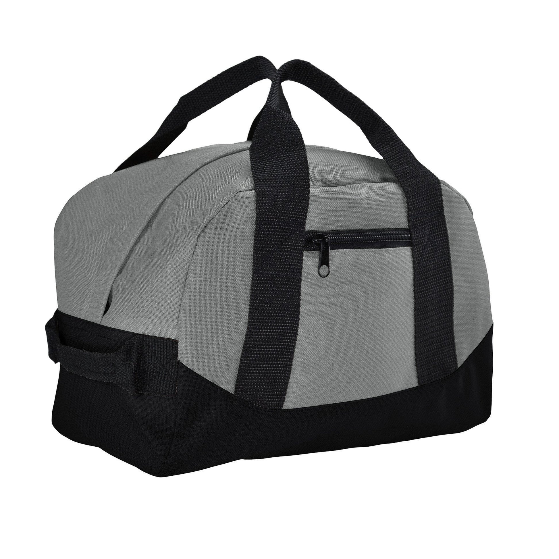 This Mini Duffel Hand Bag measures at 12' and has ease of use and portability. Features a single zipper closure with a front pocket for easy storage accessibility, and also contains inner compartments for all your to-go accessories. Choose a variety of bright and vibrant colors to match you! This duffle bag is 12' long, perfect for airplane rides, travel, luggage, and gym use. This versatile bag has it all, its lightweight and comes with many different colors. Its Tiny and two toned in more color giving a vibrant feeling. MATERIAL: 600D Polyester. SIZE: 12' X 8' X 8'. IMPRINT AREA: 3-1/4' X 3-1/4'. FEATURE: Zippered main compartment w/ zippered front pocket, top handle and side handle. COLORS: Royal Blue, Gold, Red, Black-Gray, Dark Green, Navy Blue, Pink, Black, Gray, Purple This Mini Duffel Hand Bag measures at 12' and has ease of use and portability. Features a single zipper closure with a front pocket for easy storage accessibility, and also contains inner compartments for all your to-go accessories. Choose a variety of bright and vibrant colors to match you!