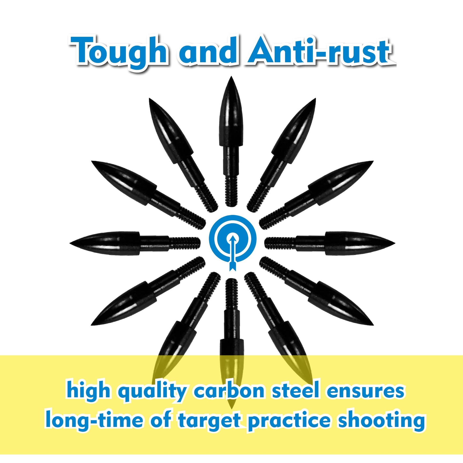 - [HIGH-QUALITY MATERIAL] 100 Grain field tips made of tough steel with a black zinc finish, Surface anti-rust treatment can use for long-time target practice shooting.