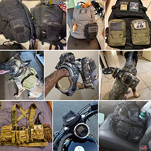 - One item includes two tactical pouches and two US flag patches. Molle pouch size: 6.1'L x 4.5'W x 2.2'T. The outside of the pouch is made of durable 1000D nylon for long time use. The inside of the pouch is made of water-resistant coating to prevent your items getting wet in damp environment.