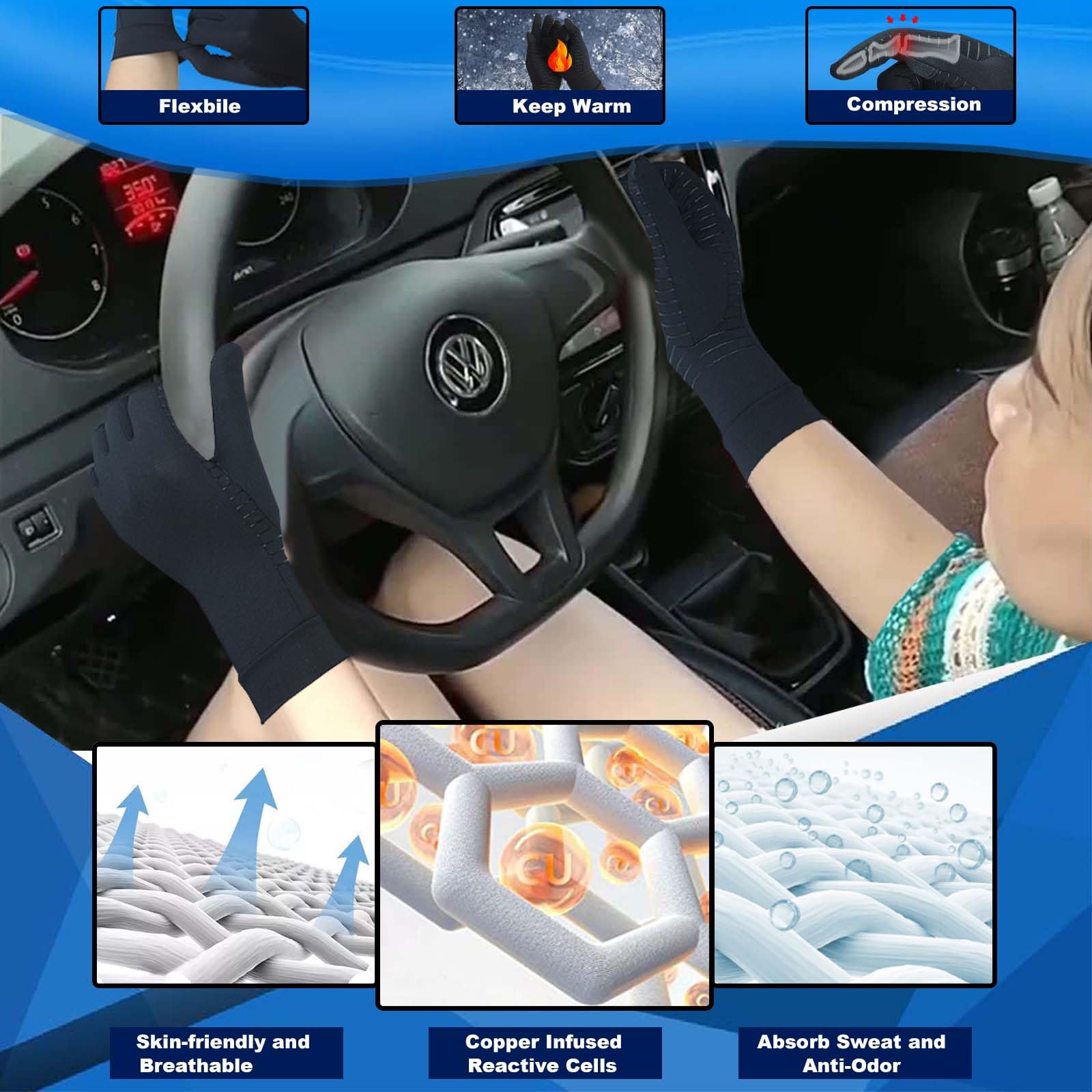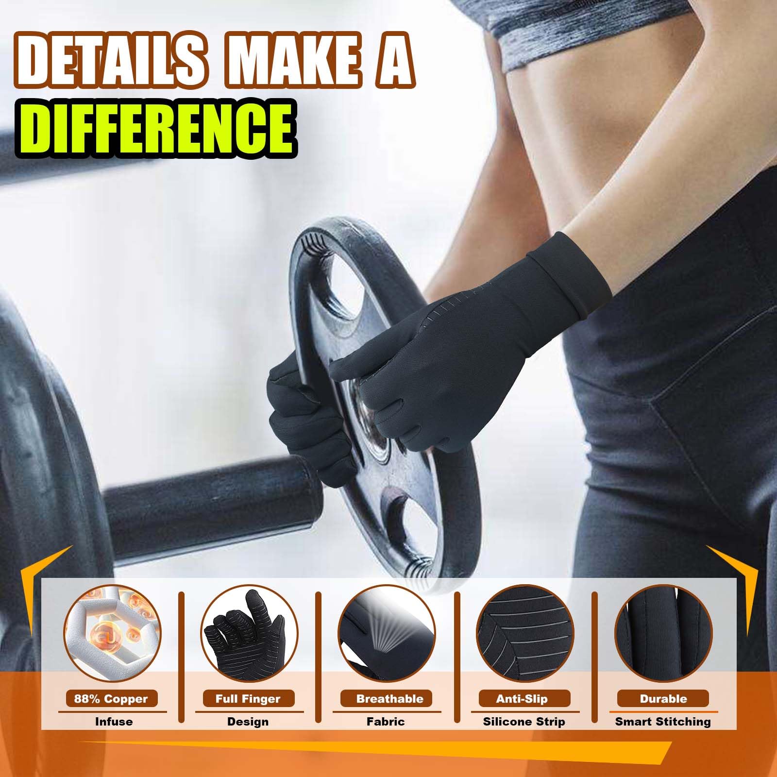 - Full Finger Touchscreen Compression Arthritis Gloves - Copper Arthritis Gloves are designed to help you get the support you need for all day and all night comfort. Commonly used by people suffering from pain in the hands, Arthritis, Carpal Tunnel, Tendonitis, stiff or sore muscles, tendons joints, wrists and more! With Touchscreen tips design, you can use electric devices with the gloves on and still feel the relief.