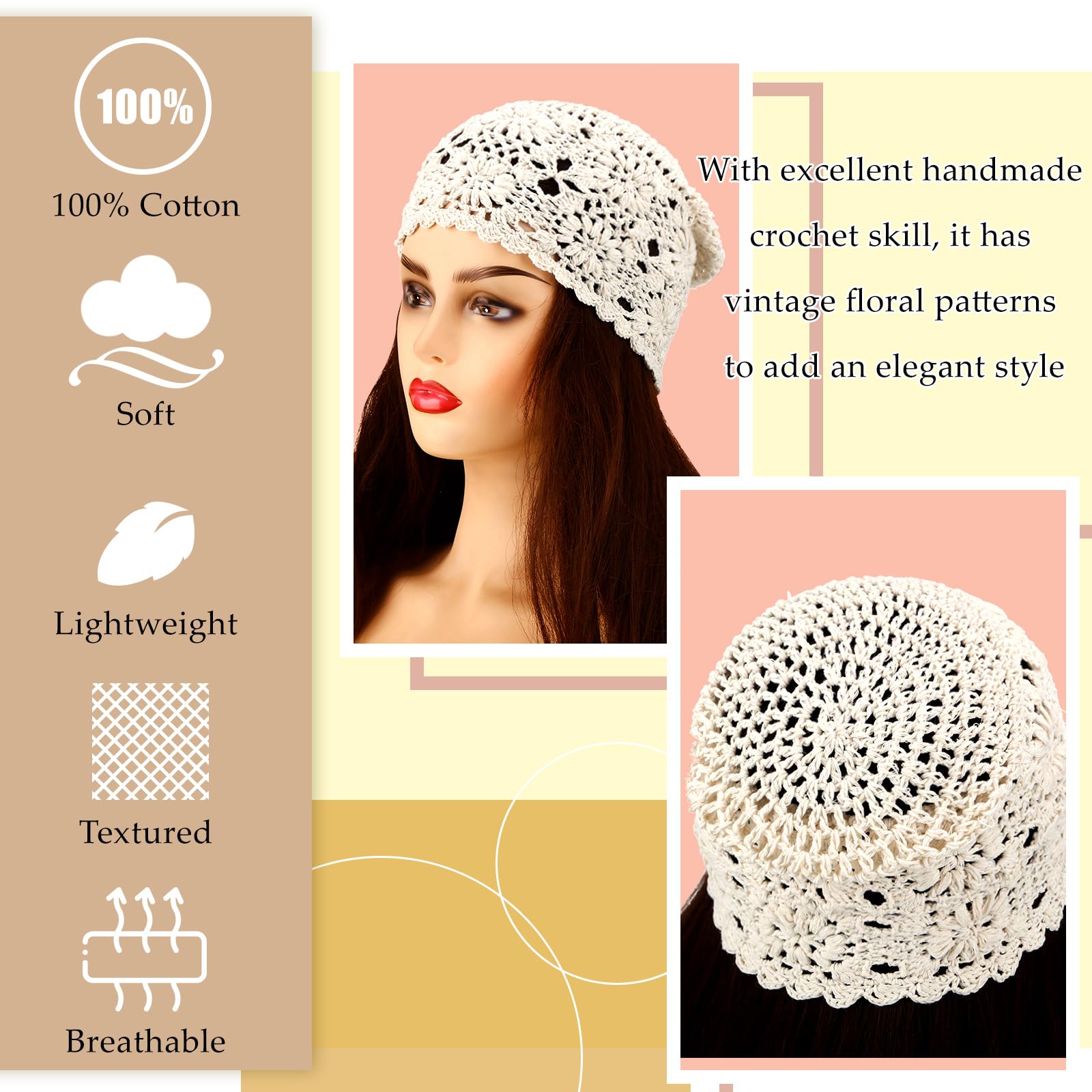 - Breathable Design: these thin and cutout style crochet hats for ladies are ideal for spring, summer, and fall and provide a pleasant wearing experience; They also allow you to ignore pesky perspiration