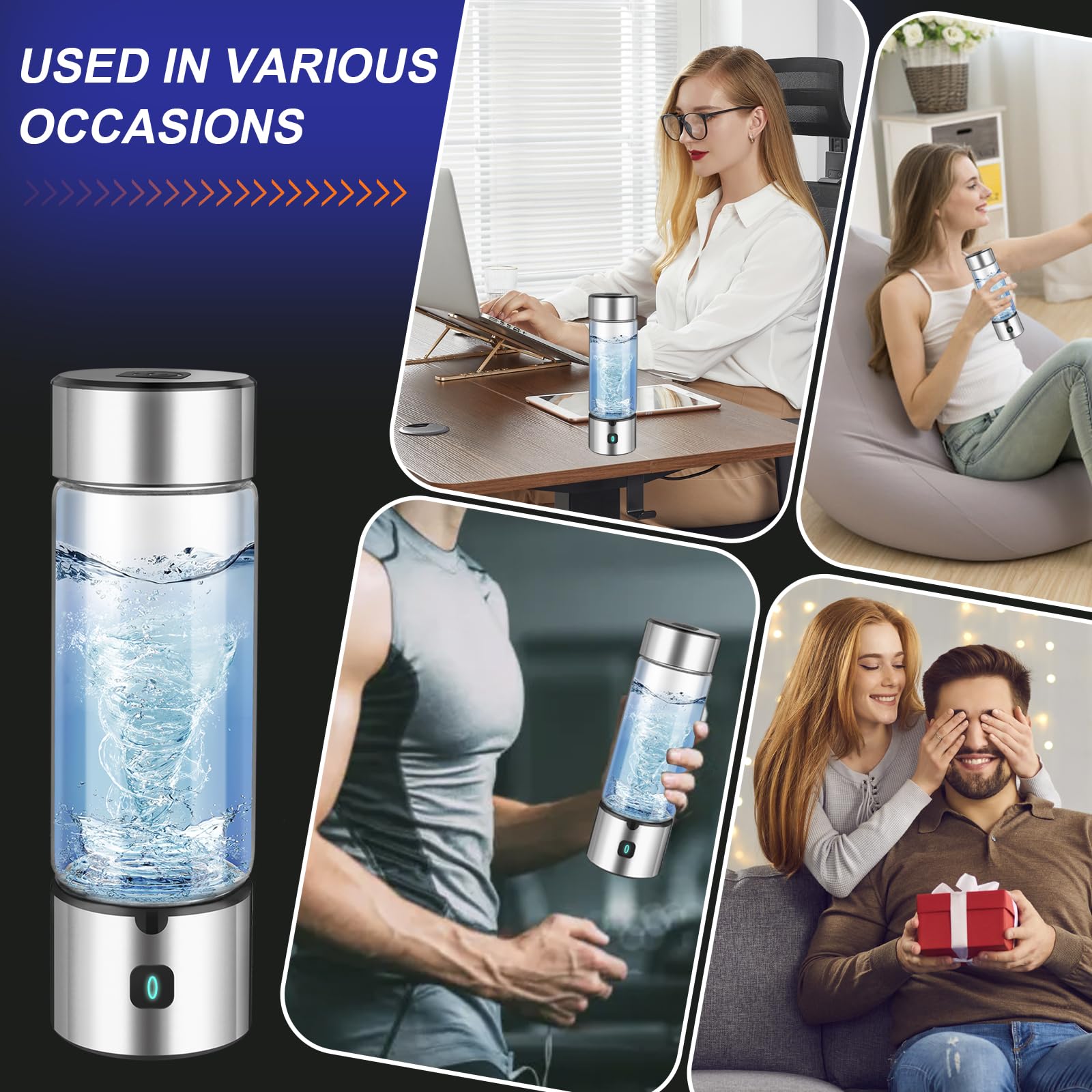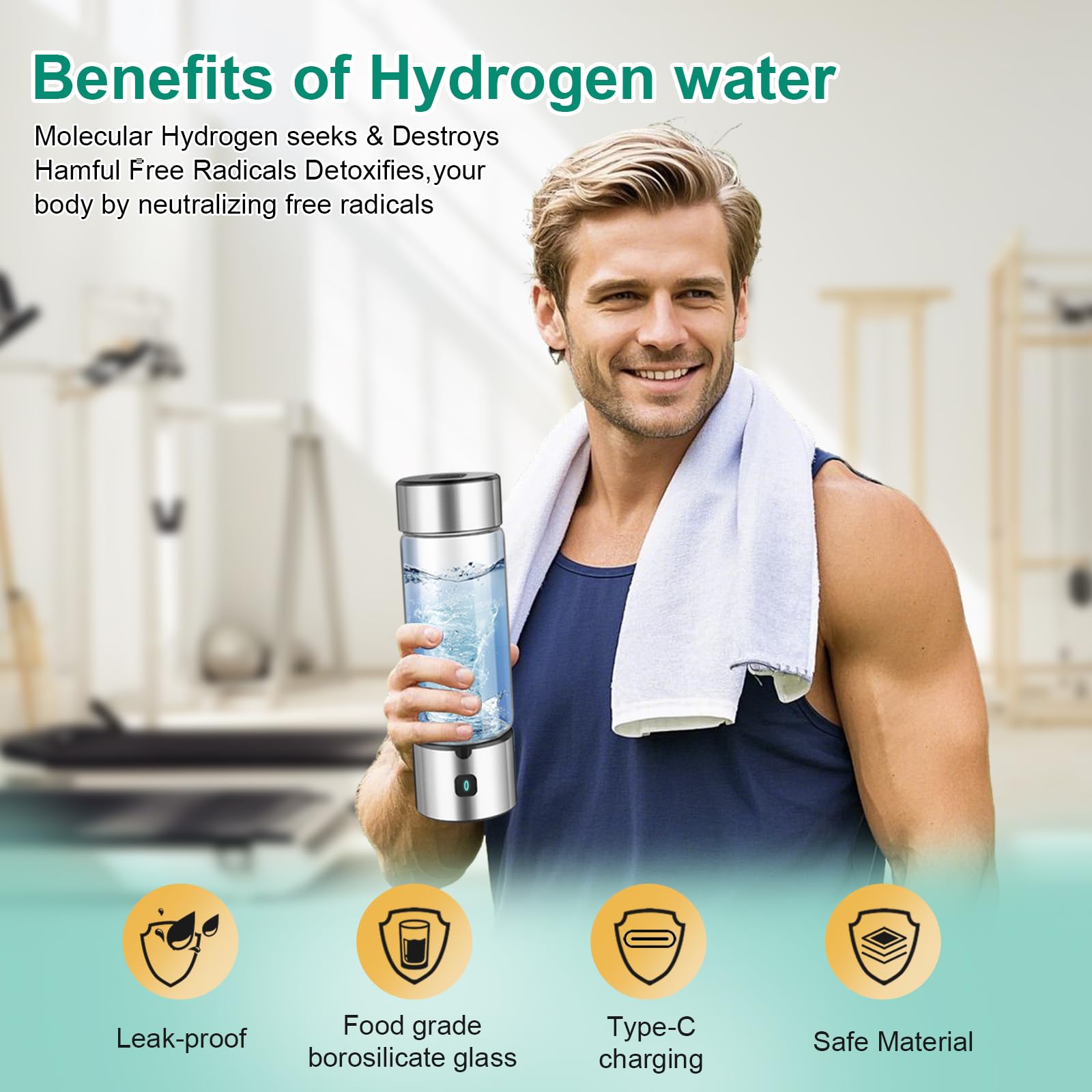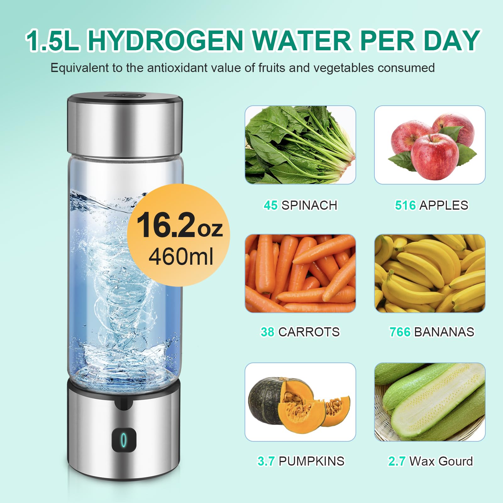 - 【Enhanced Hydration & Portability】 Designed for active lifestyles, this hydrogen water bottle with a 460 ml (16 ounces) capacity, features aerospace-grade sealing to prevent leaks during workouts or travel. The compact 7.5' height fits car cup holders and gym bags perfectly, while the borosilicate glass of our hydrogen water generator keeps water pure. made from food-grade borosilicate glass.