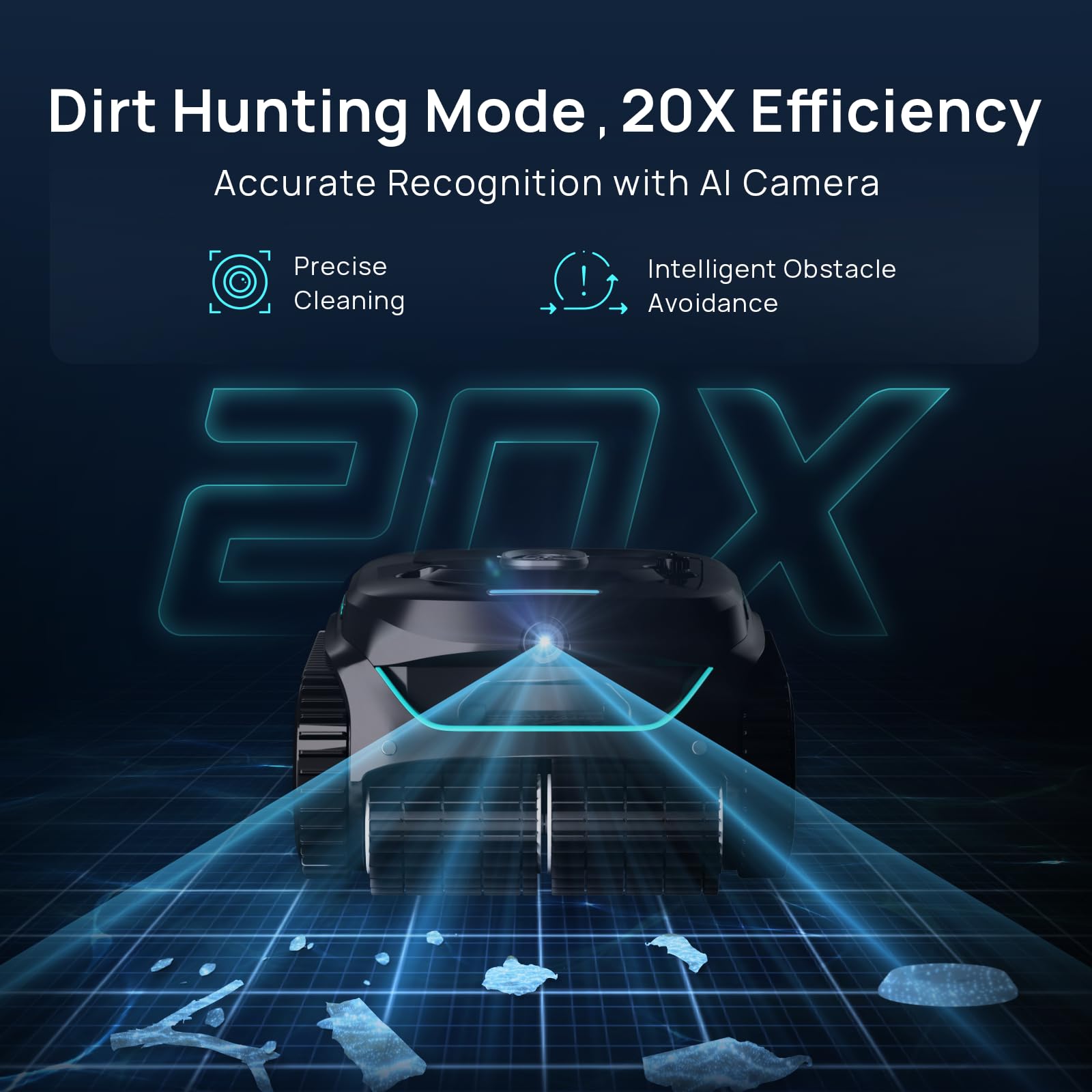 - AI Learning Enables a Customized Pool Database: In the first month, the AI will learn more about debris and obstacles to plan optimal path, allowing it to become your customized pool cleaning robot with up to 20x efficiency improvement