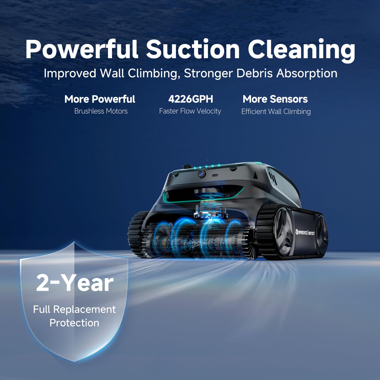 - Upgraded Wall Climbing and Powerful Suction:The pool cleaning robot has upgraded sensors for more efficient and accurate wall climbing. This pool vacuum cleaner is equipped with a brushless motor that provides strong suction for more efficient cleaning