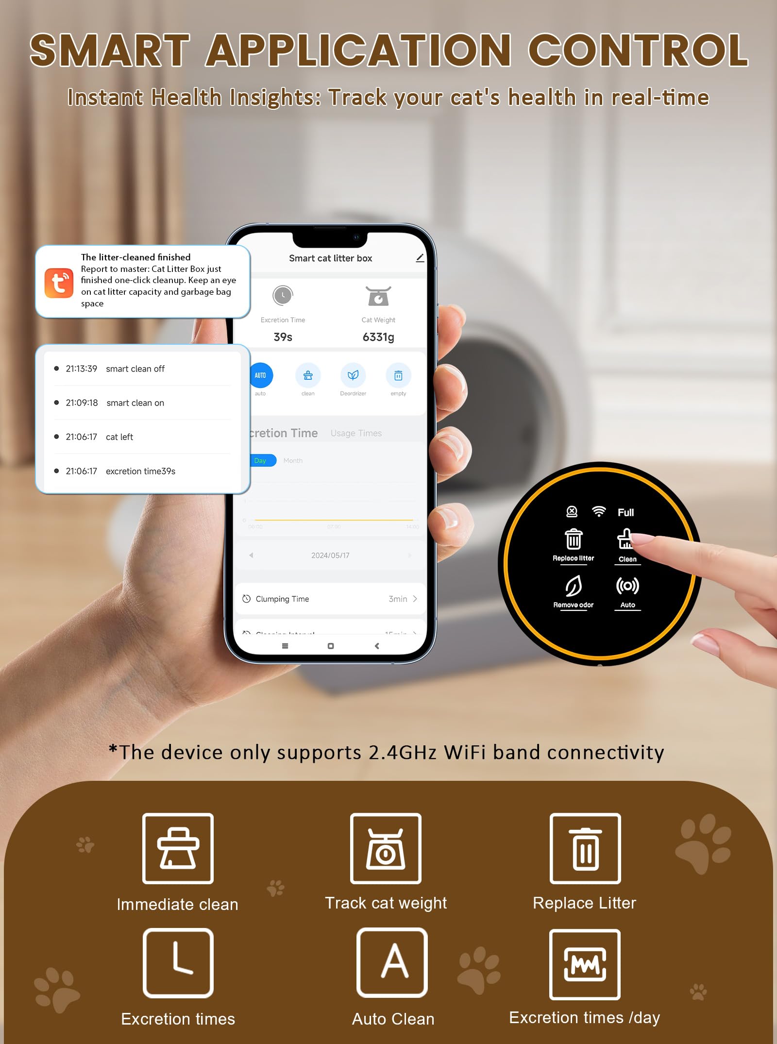 - 😻【Manual Control and App Control】Manual control can be adjusted - Auto Clean / Timer Clean / Manual Clean, in addition, the app control has more rich functions for you to experience (please note: the app is only compatible with 2.4GHz Wi-Fi).