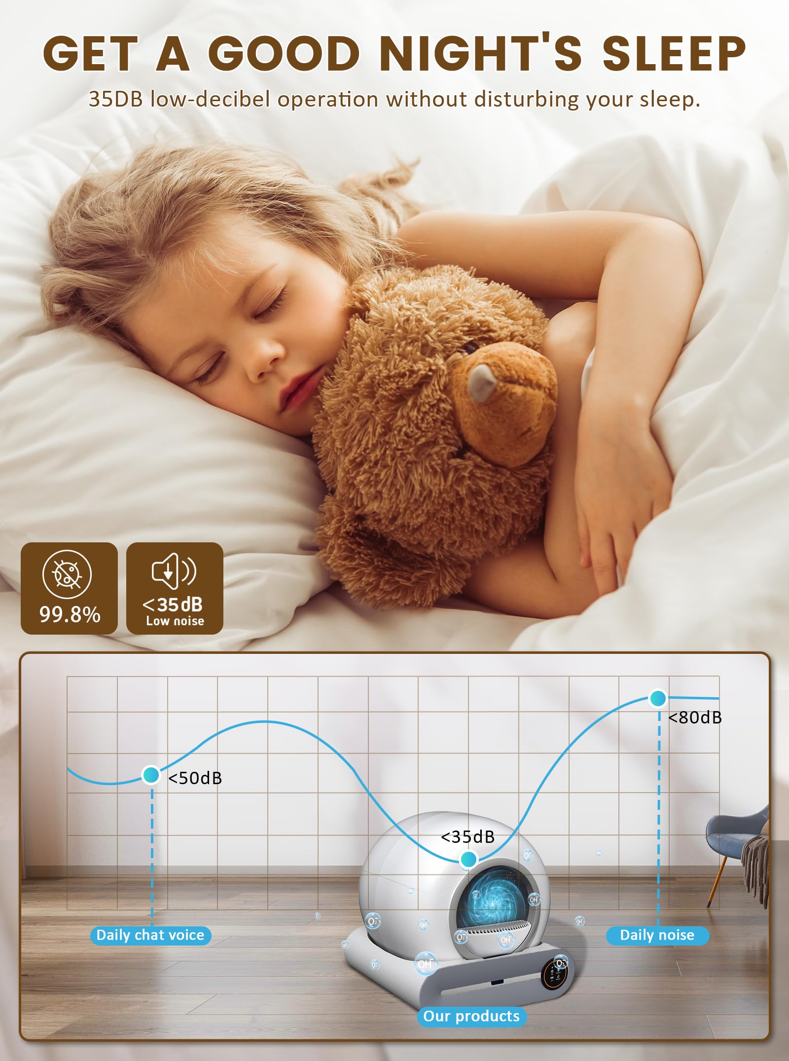 (2025) Self Cleaning Litter Box, Upgraded Robot Automatic Litter Box for Multiple Cats, 65L+9L Extra Large, Features Negative ion Sterilization and Deodorization, APP Control, 3 Rolls Litter Liners