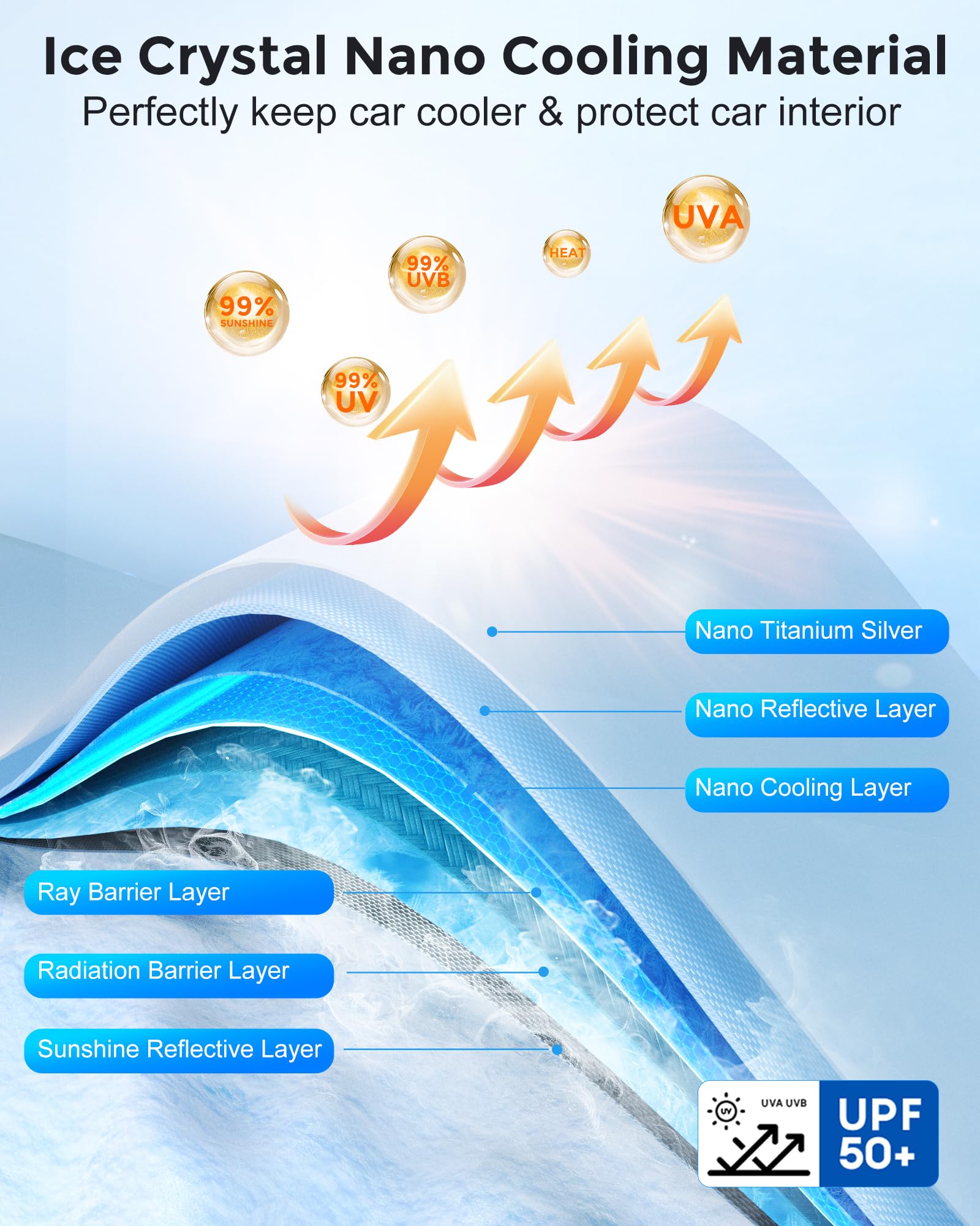 - [No Need To Wait, Go Directly] - Made with the newest generation of Sik materials and Vinyl technology, which has excellent sun protection ability, it can effectively block 99% of ultraviolet rays, radiation, and any heat; Efficiently reducing the temperature inside the car, creating a comfortable driving environment for you and your family and friends.