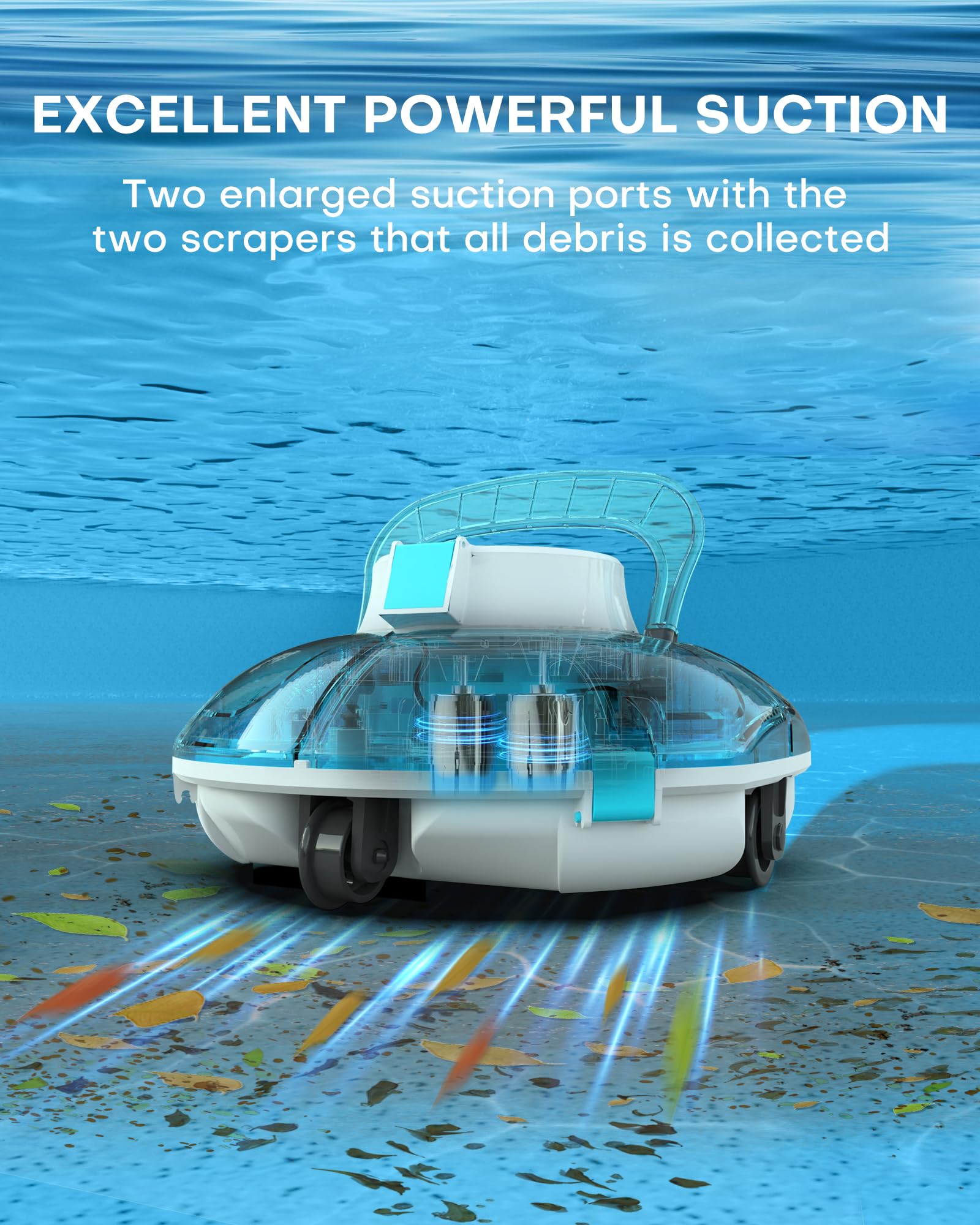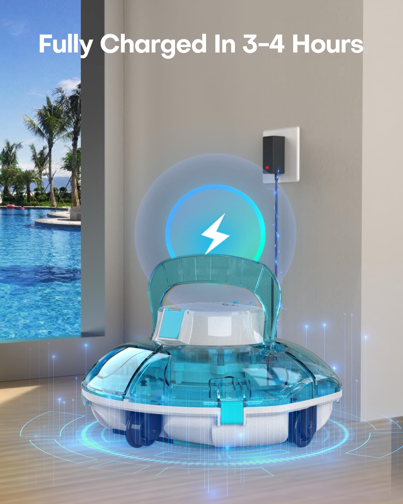(2025 Upgrade) Cordless Robotic Pool Cleaner, Lasts 75 Min, Automatic Vacuum for Above-Ground Pools up to 645 Sq.ft,Portable, Self-Parking,Transparent Blue