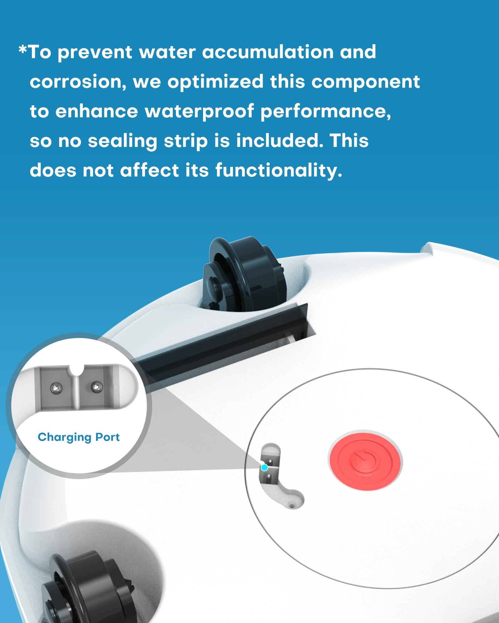 - To prevent water accumulation and corrosion, we optimized this component to enhancewaterproof performance, so no sealing strip is included. This does not affect itsfunctionality.