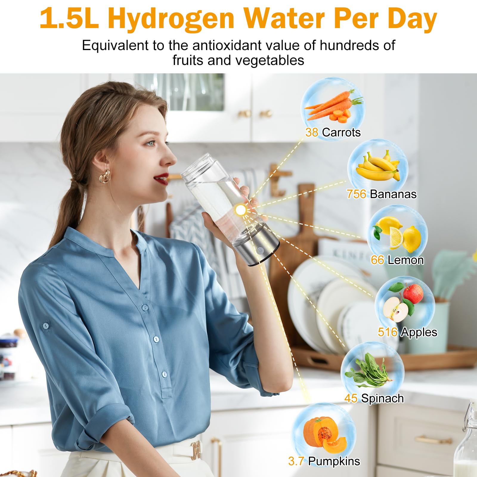 - Health-Enhancing Hydrogen Water: With just a push of a button, transform your regular drinking water into hydrogen-rich water within 3 minutes. Our bottle promotes enhanced metabolism, improved nutrient absorption, and a boosted immune system. Experience the benefits of better memory, quality sleep, and speedy muscle recovery post-exercise.