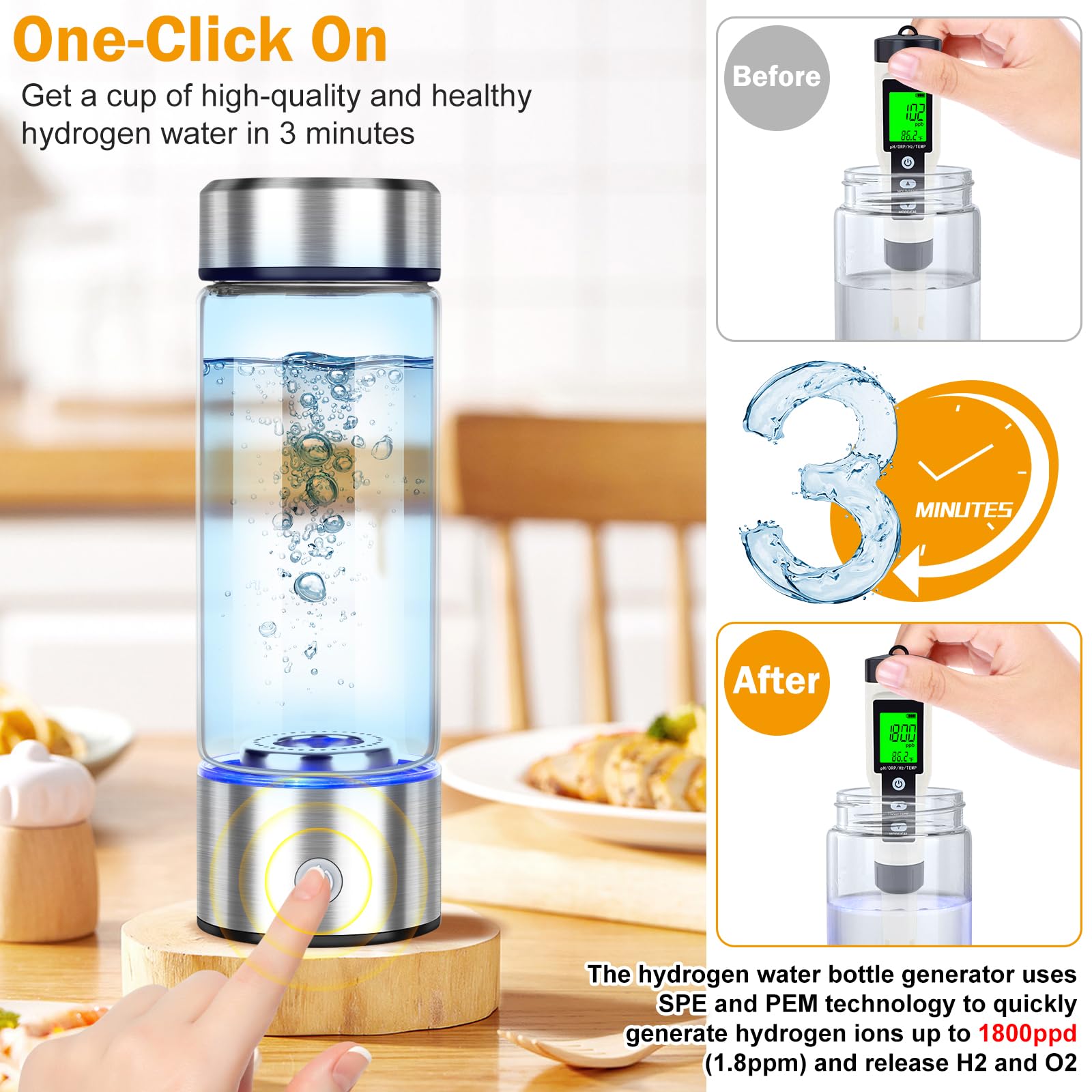- Health-Enhancing Hydrogen Water: With just a push of a button, transform your regular drinking water into hydrogen-rich water within 3 minutes. Our bottle promotes enhanced metabolism, improved nutrient absorption, and a boosted immune system. Experience the benefits of better memory, quality sleep, and speedy muscle recovery post-exercise.