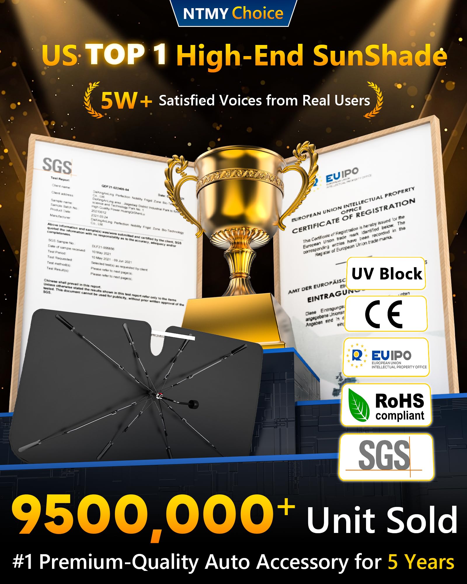 - 👑【 High-Quality】Our windshield sun sunshade is built to last, with 8 aluminum ribs made of military-grade materials that can withstand 5000 bends without breaking. The adjustable umbrella ribs ensure that the sun shade always stands firmly providing you with the ultimate in stability and durability.