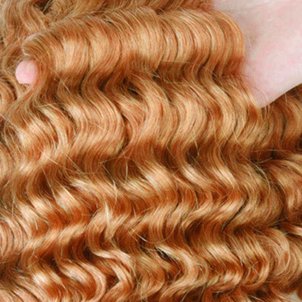 #27 Bundles Human Hair Honey Blonde Deep Wave Bundles 14 16 18 Inch 8A Peruvian Virgin Hair 3 Bundles Color 27 Deep Wave Bundles Hair Extensions Blonde Bundles Human Hair