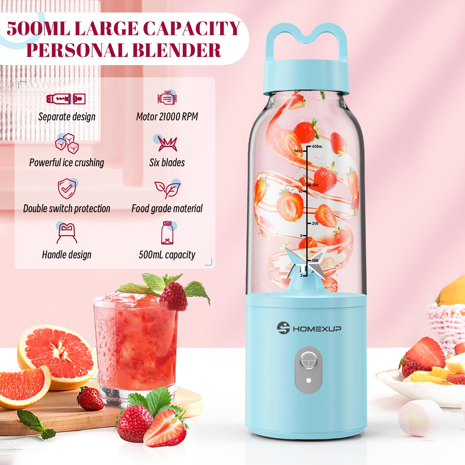 2PCS Portable Personal Blender 17 OZ/500 ML Juicer, 175W Personal Size Blender, Ideal for Smoothies, Ice Blending, Juicing, and Food Processing, Compact, Convenient, and Versatile(Blue&White)