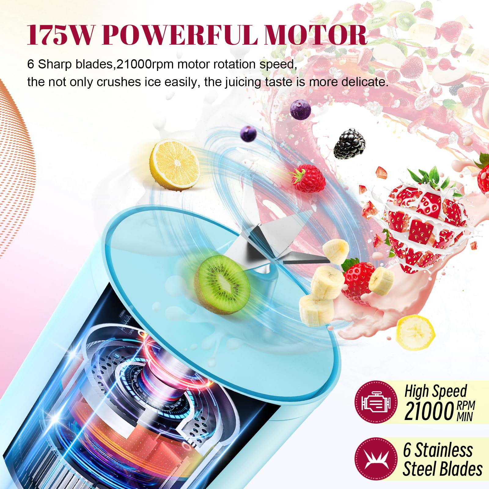 - One-touch Powerful Start: Despite its small size, our personal blender boasts 175W and 21000RPM powerful high-speed technology, providing enough blending power to meet your daily needs in just 30 seconds. Perfect for making nutritious and healthy smoothies, ice drinks, and margaritas, it is ideal for home, office, travel, dormitory, and apartment use.