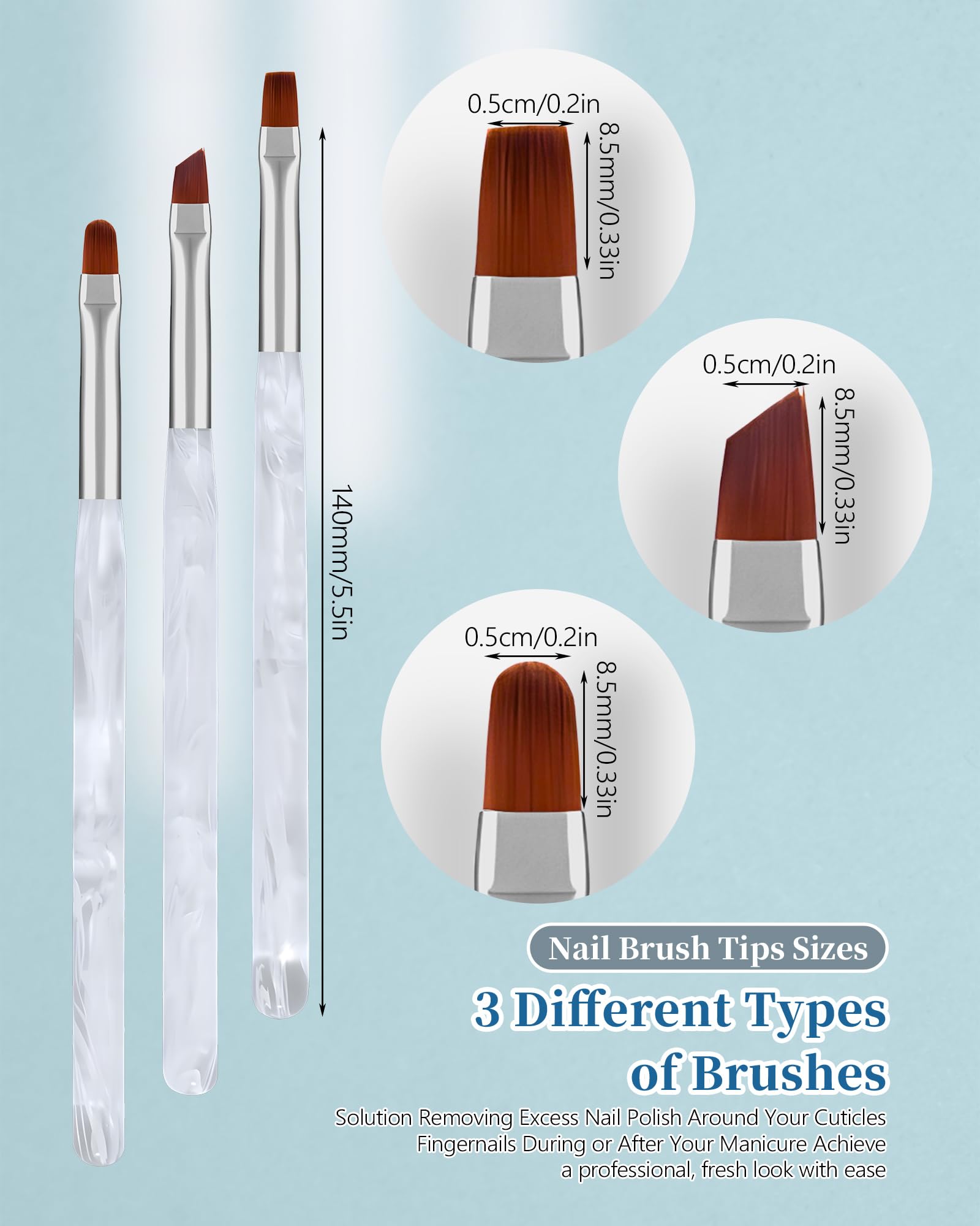 - Multi-Functional Brush Shapes: The set includes three different-shaped brushes to meet diverse cleaning needs. Tapered round brushes effectively clear large areas of excess polish, while angled tips are perfect for precise clean-up in tight areas