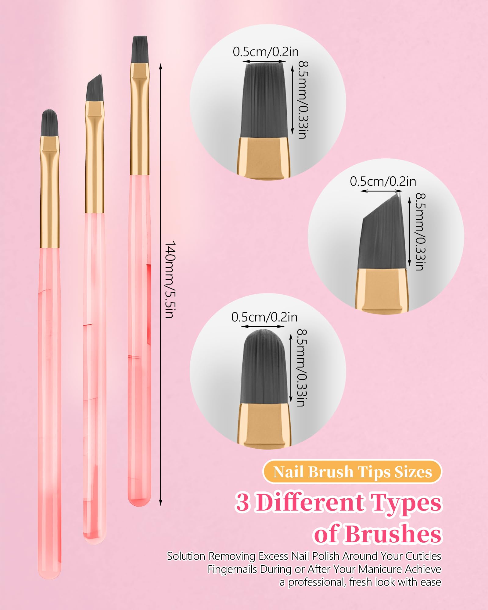 - Multi-Functional Brush Shapes: The set includes three different-shaped brushes to meet diverse cleaning needs. Tapered round brushes effectively clear large areas of excess polish, while angled tips are perfect for precise clean-up in tight areas