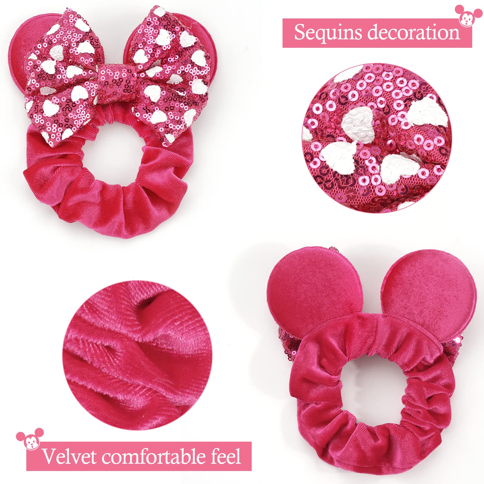 - Velvet Sequin Design: Kids scrunchies with bow glitter detail add a fun twist to any hair style. Classic iconic mouse ear design will add sparkle to any outfit. Velvet scrunchies for women and kids are a fun way to match outfits and hair accessories with each other. Cute scrunchies for women are also a great gift idea for any age!