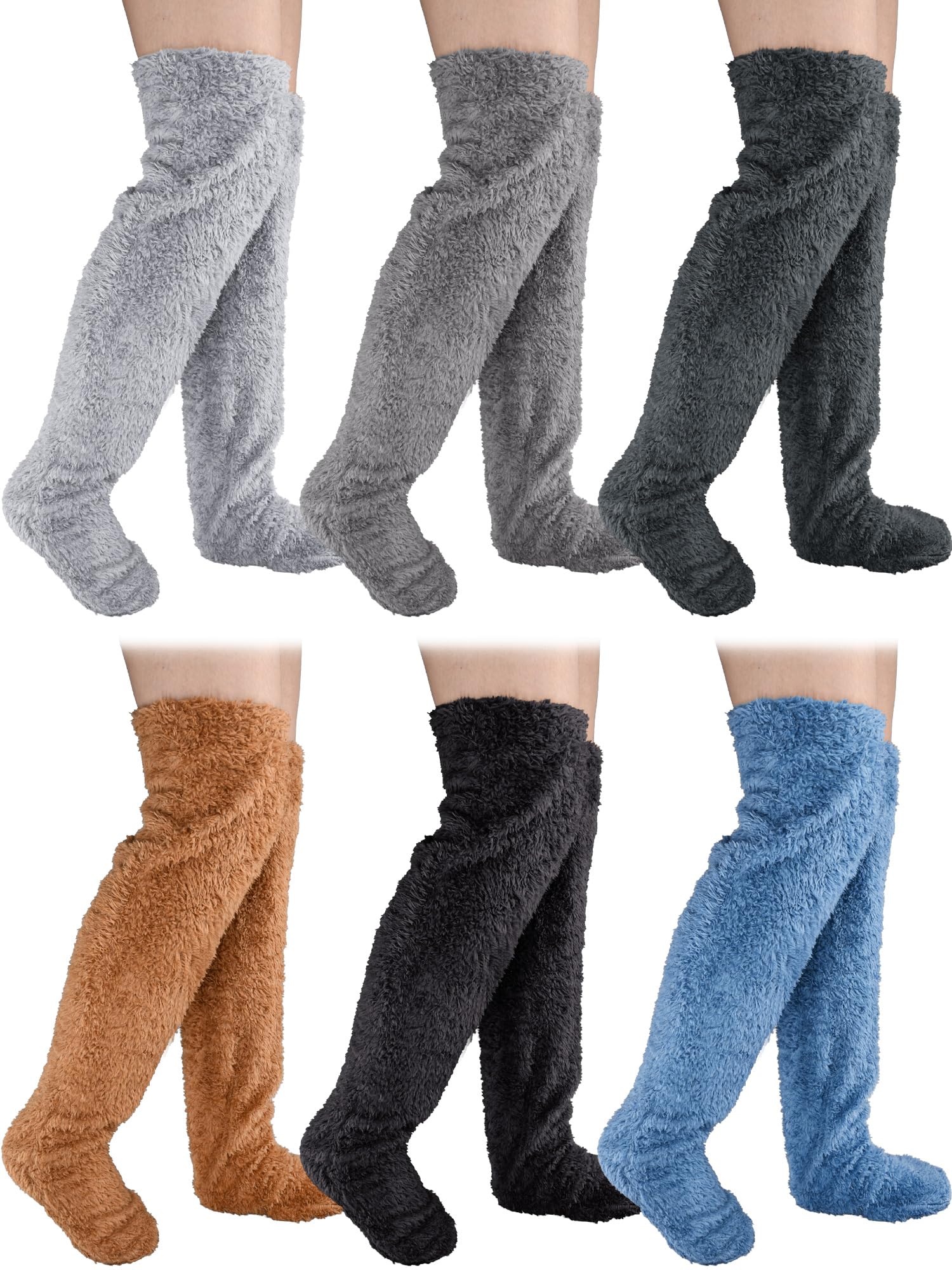 6 Pairs Fuzzy Leg Warmers Women Thigh High Furry Socks Over Knee Fluffy Sleeping Socks Slipper Stockings for Winter