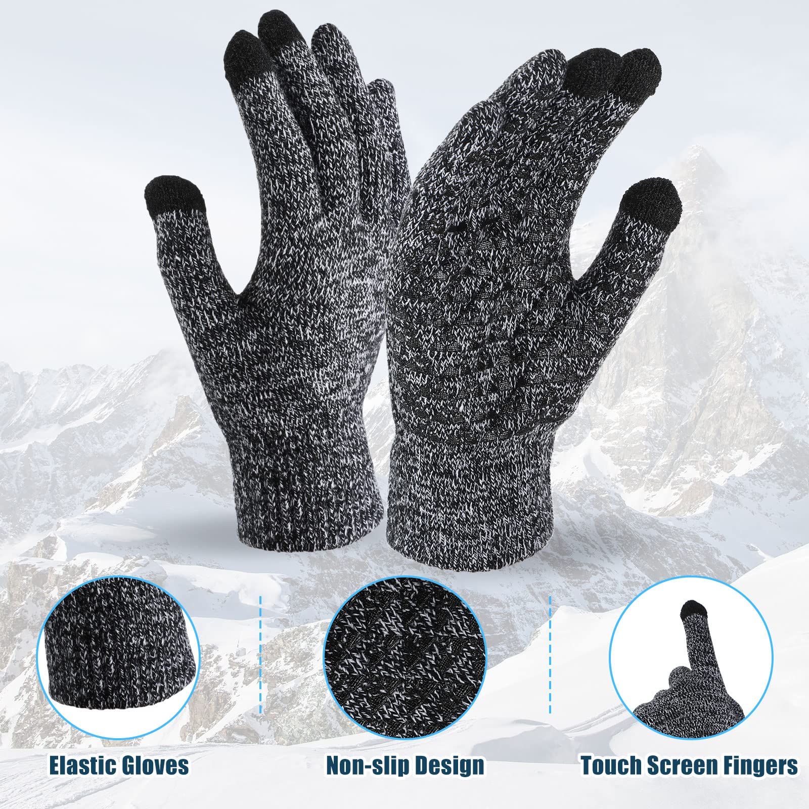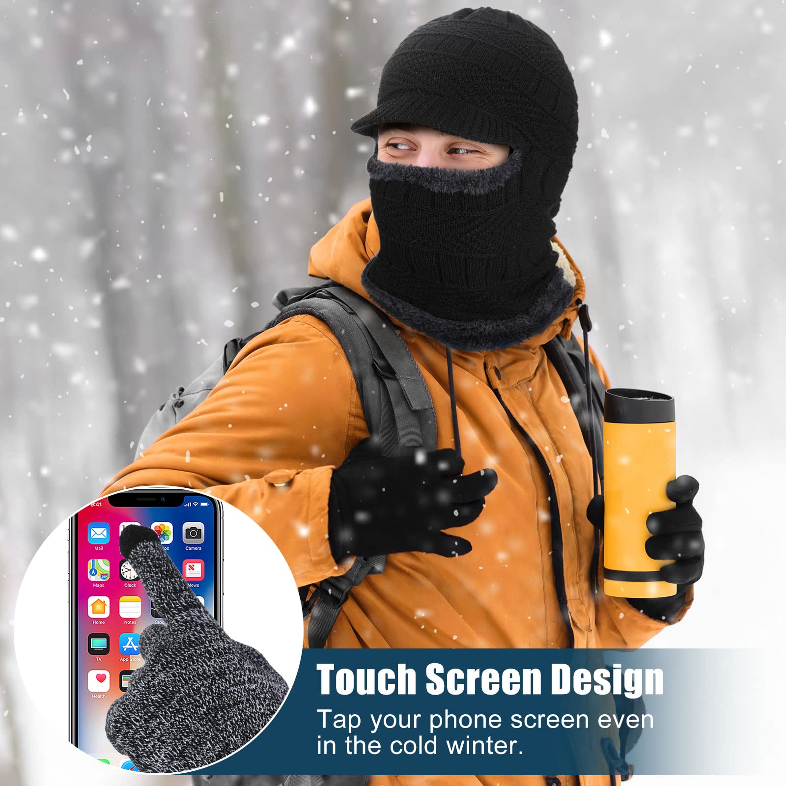 6 Pcs Winter Knit Balaclava Hat Anti Slip Touch Screen Mittens Set Winter Knitted Balaclava Beanie Knitted Winter Hat Thermal Winter Gloves for Men Women Outdoor Sports