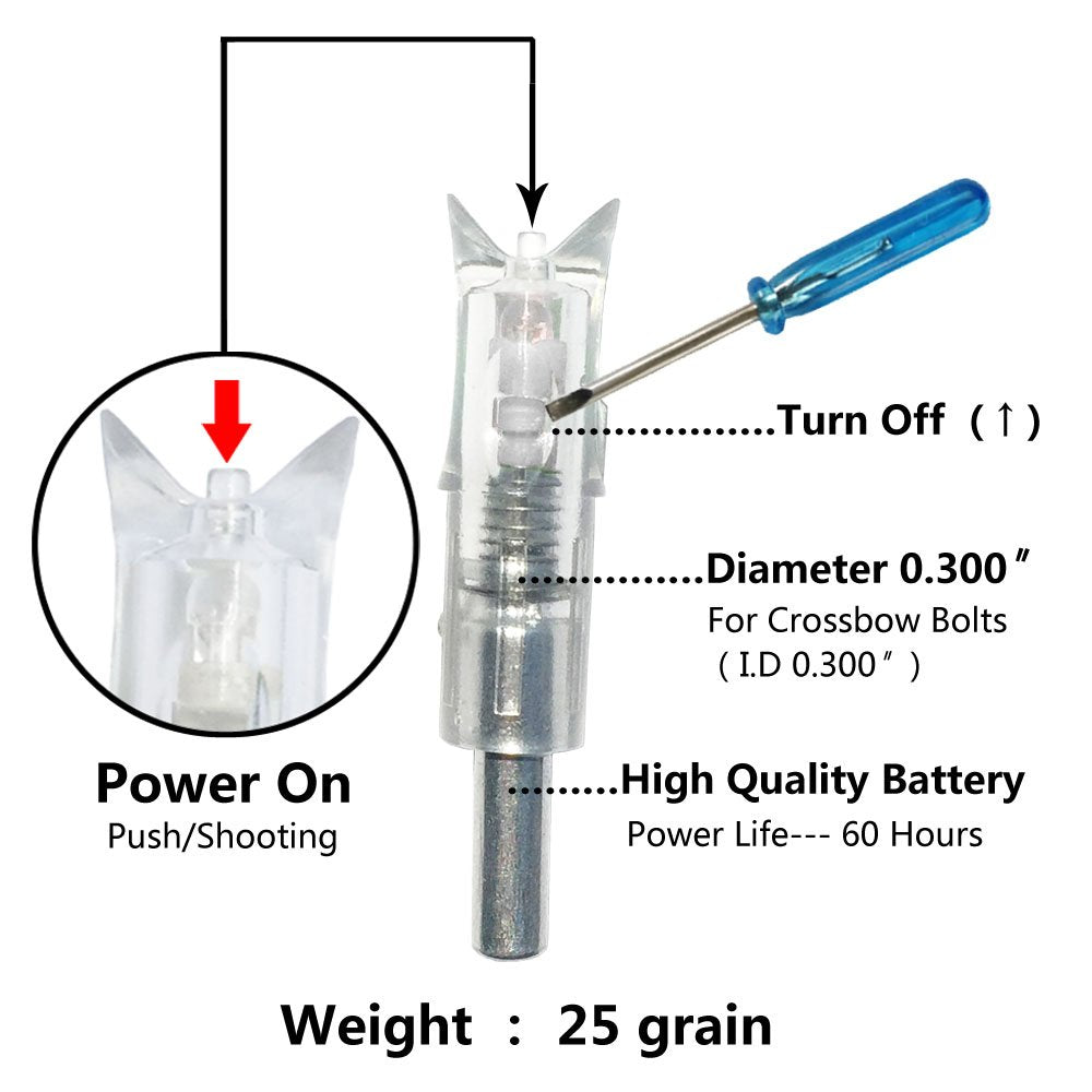 Details: Lighted Nocks for Crossbow with 0.300'(7.62mm) Inside Diameter-6 Pack