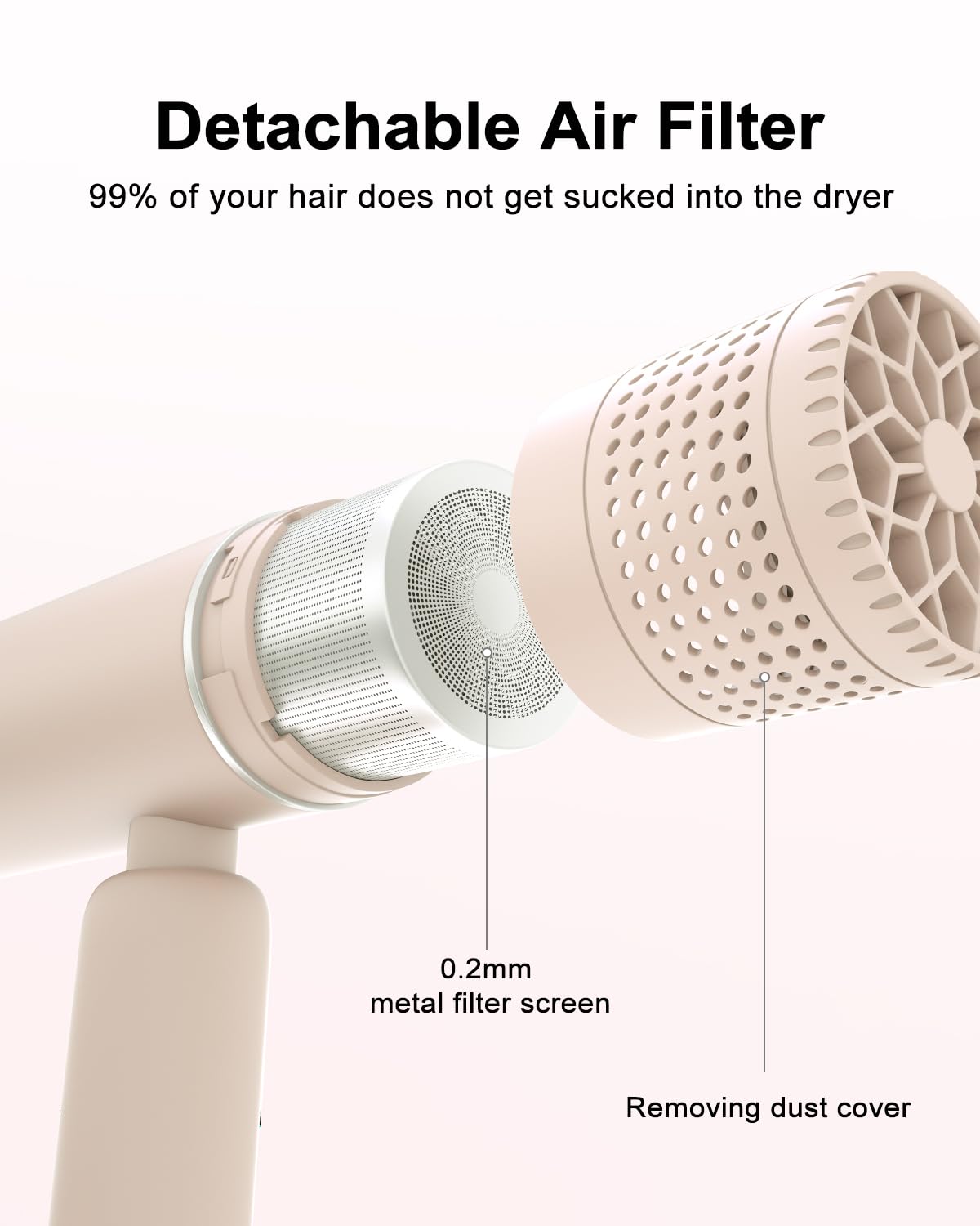 - Prevent 99% of the Hair from Being Inhaled - We have upgraded and improved the design of the hair dryer inlet, which can 99% prevent hair from being inhaled. As well as the addition of a removable double safety dust cover can prevent dust and particles from being sucked into the blow dryer. Additional small soft brush accessories, you can always clean the air inlet and dust cover to ensure wind power