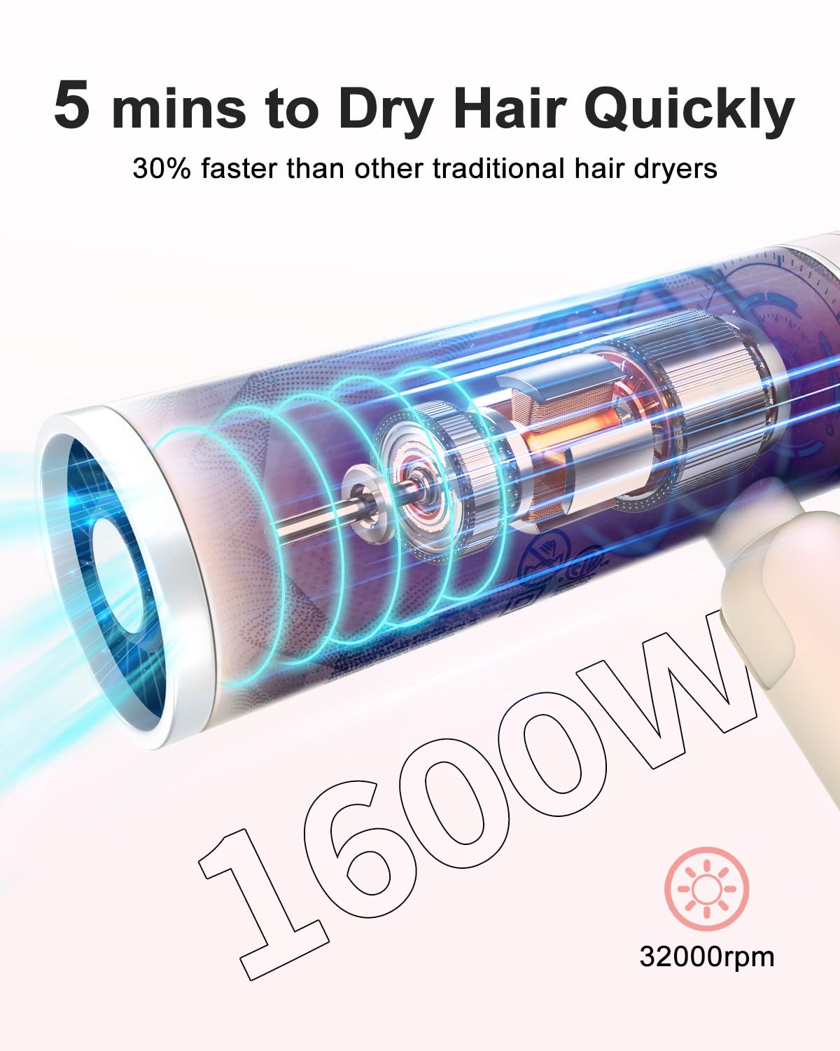 - Blowing Hair Time 30% Faster than Ordinary Hair Dryer - 7MAGIC hair dryer's maximum wind speed is 18m/s; the rotational speed is 32000 RPM. Wind speed is 2 times the other hairdryer. Drying hair is 30% faster than the ordinary blow dryer. It only takes 1-2 minutes for short hair, 3-5 minutes for medium-length hair, and 5-8 minutes for thick and long hair