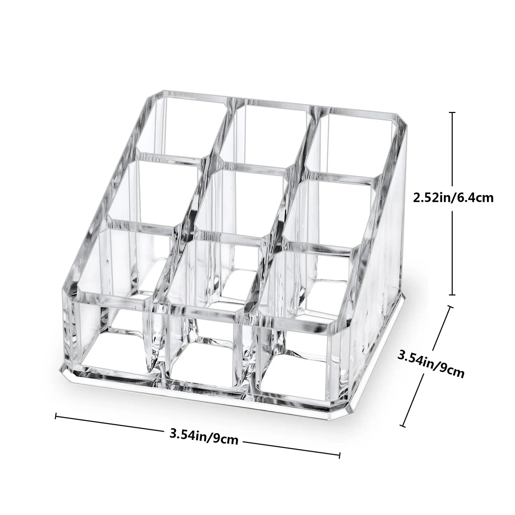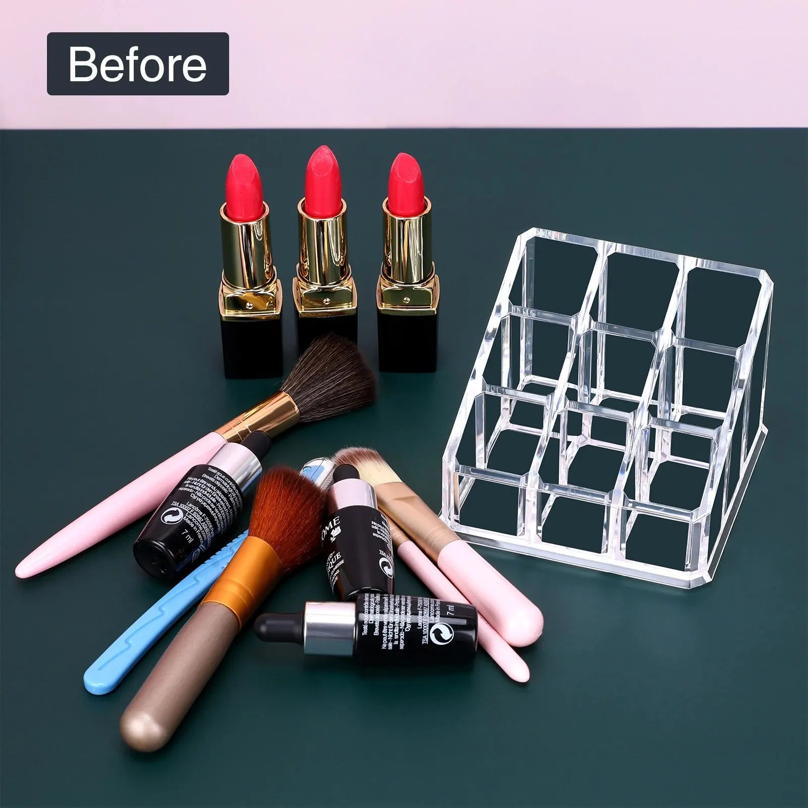 Maximize your storage space with our 9-Grid Lipstick Storage Rack. The unique design allows you to easily organize and access your lipsticks without taking up too much room. Made with high-quality materials for durability and functionality. Perfect for any makeup enthusiast looking to declutter their vanity.