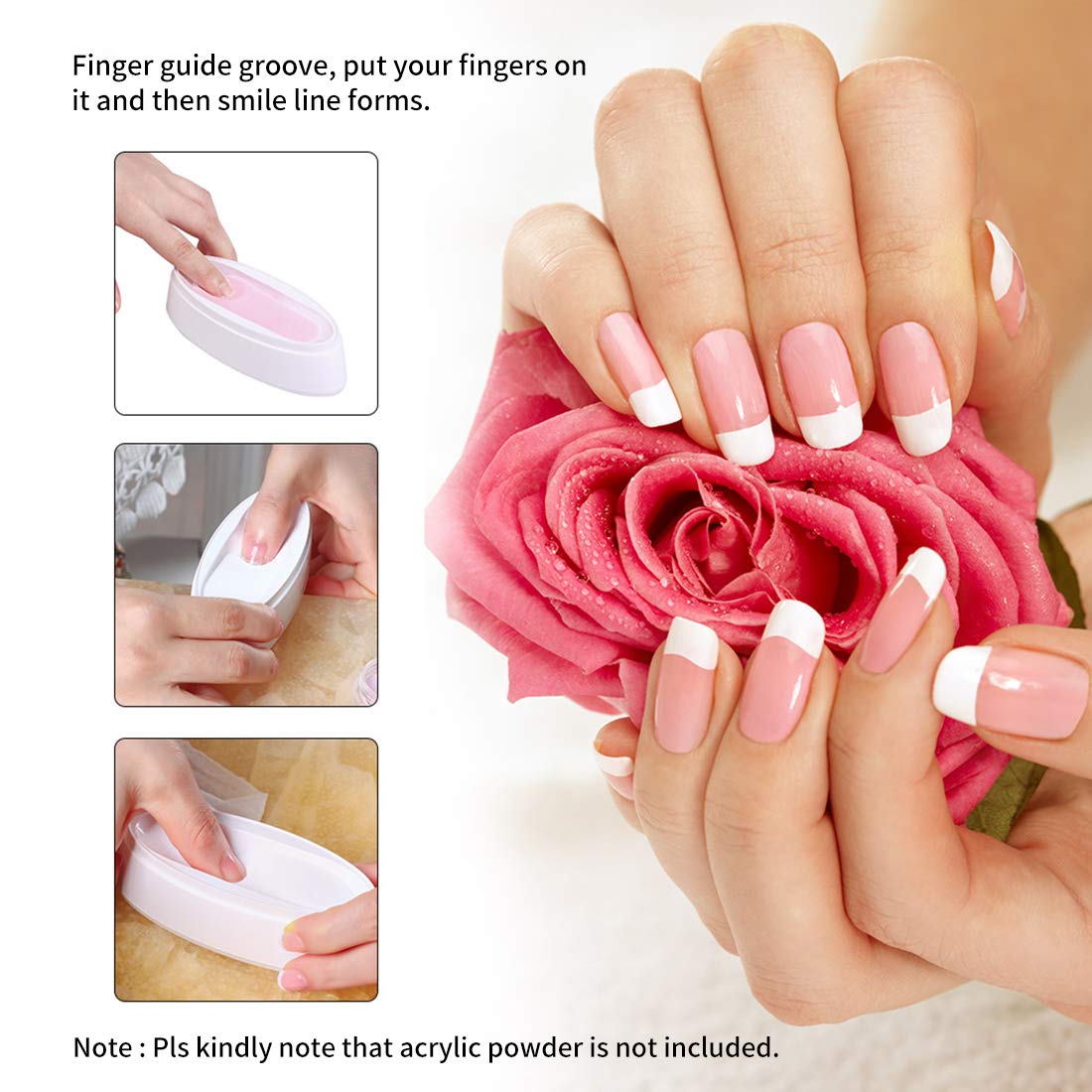 ABS Durable Easy French Dip Tray Dipping Powder Container Dual Use for Short Extended Nails Molding for White Pink Smile Line Pack of 1, HJ-NAT117