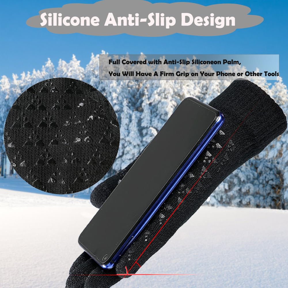 - Knitted gloves: Featuring high sensitive conductive material on thumbs, forefingers and middle fingers, you can wear the gloves to touch screen of your smartphone, tablet, Phone or other touch screen devices,Thickened elastic wrist keeps the glove closed around your skin and keeps the snow or wind out in winter.