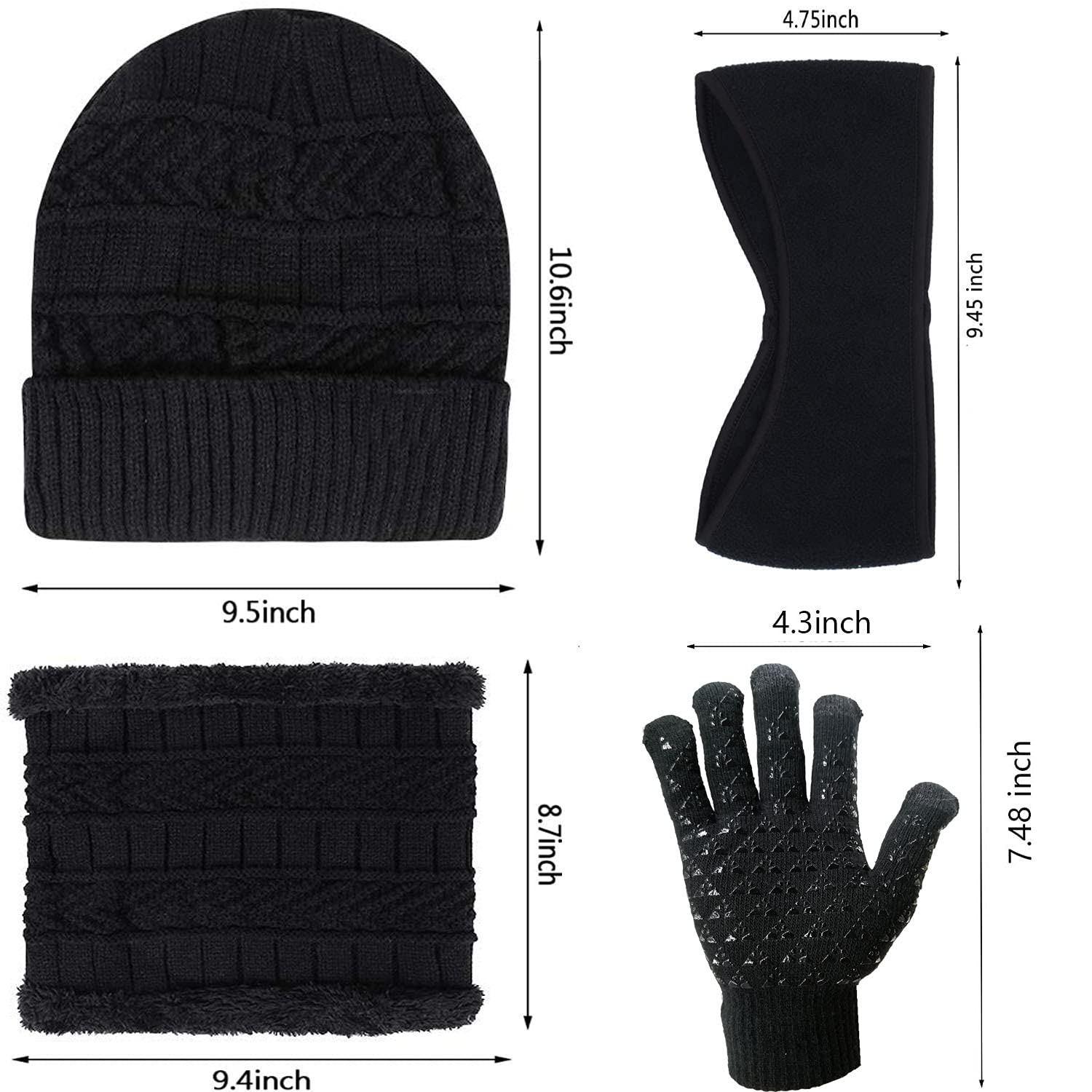 - Package includes:1 piece of warmer winter hat, 1 piece of scarf, 1 pair of touch screen gloves ,1 Piece of ear warmer