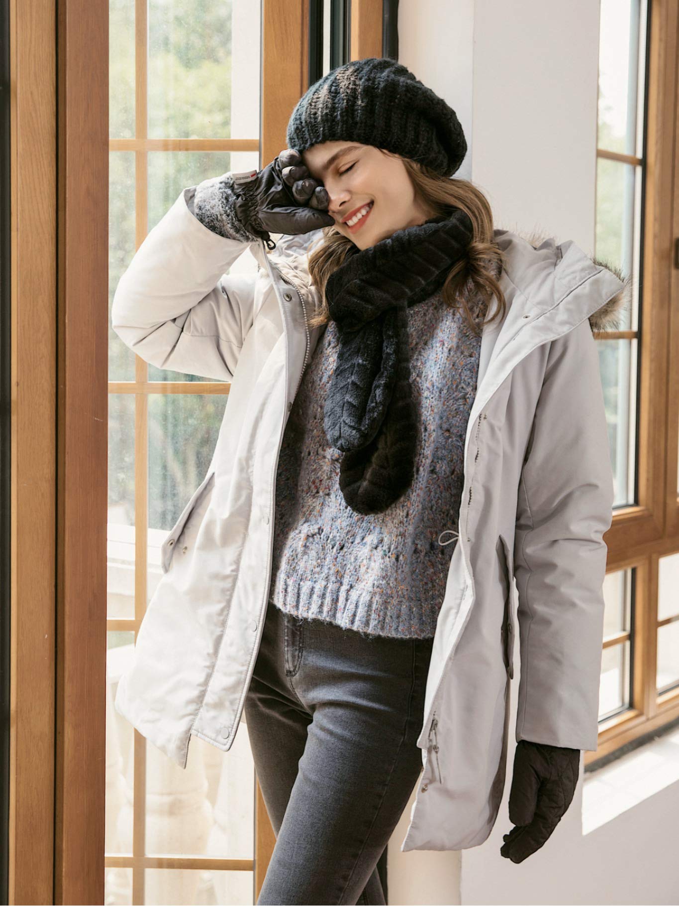 - FASHIONABLE DESIGN: Great slim fit shape. Exclusive faux fur and adjustable wrist strap; clip cord with lock.