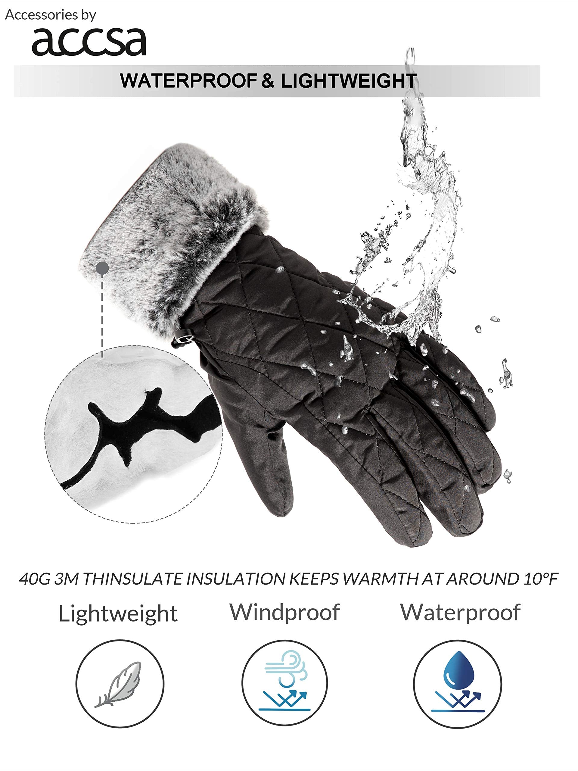 accsa Women Winter Ski Glove Waterproof 3M Thinsulate Warm Windproof Brown L