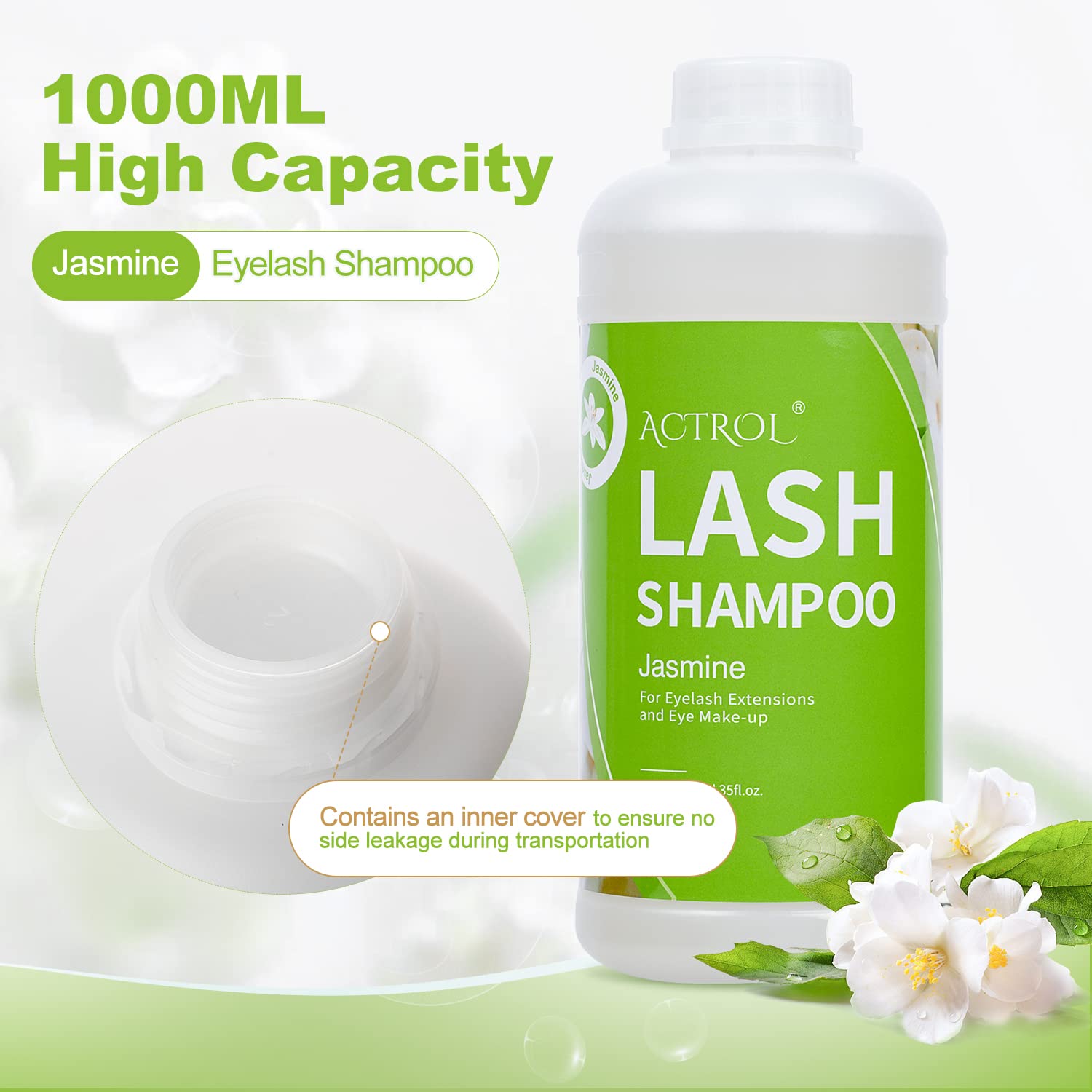 ACTROL Eyelash Extension Cleanser Jasmine 1L Natural Lash Extension Shampoo Professional Eyelid Foaming Cleanser Paraben & Sulfate Free Non-lrritating with Salon and Home Care