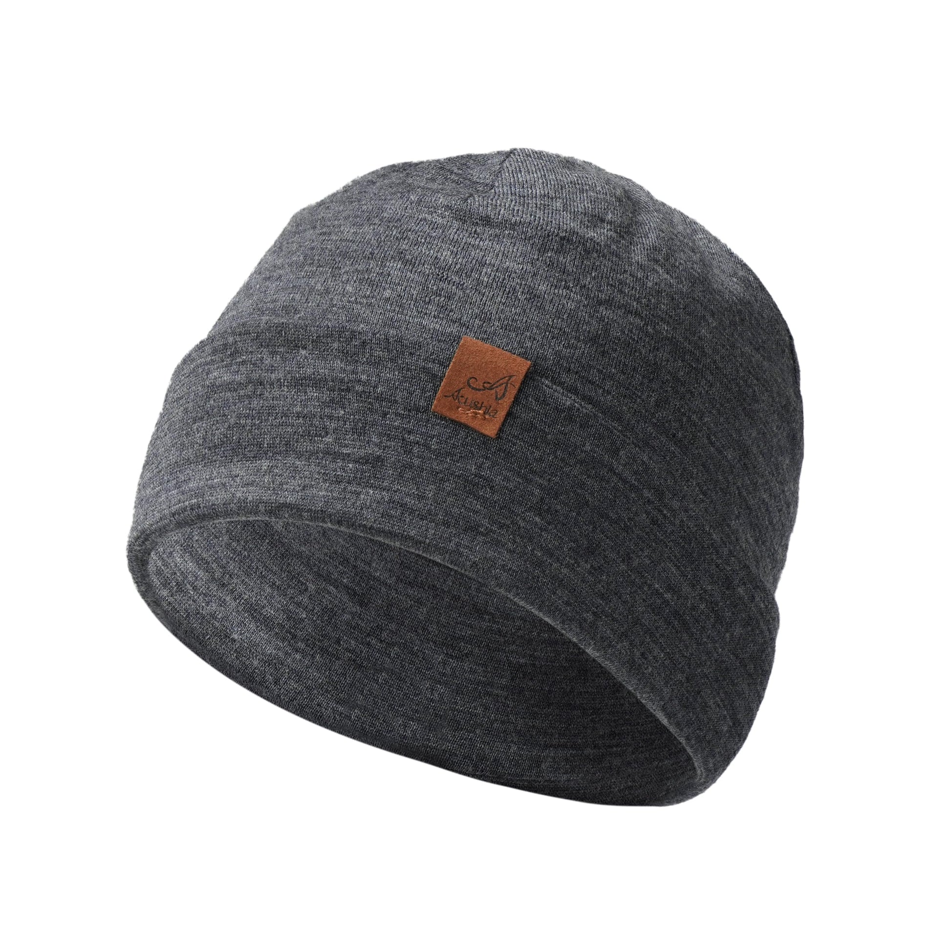 ACUSHLA 100% Merino Wool Cuff Beanie for Men & Women Knitted Winter Hat Unisex Watch Cap Skull Wrap for Cold Weather, Dark Grey