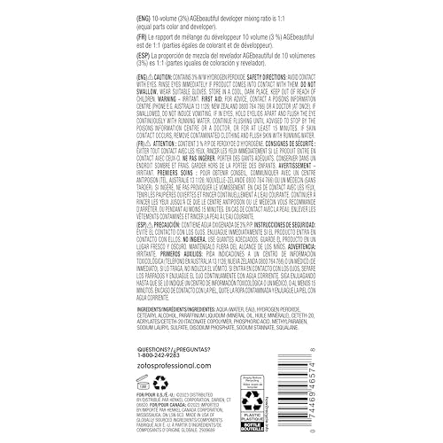 Details: AGEbeautiful was specifically designed for mature hair (35 years or older) experiencing any of the 5 signs of aging hair, but it will provide rich, natural-looking color to all hair types and age groups. Now with Biotin, our professional hair color formula helps to nourish and fortify the fibers for fuller, thicker and healthier looking hair. Our professional hair dye formulas offer better gray coverage than boxed color. Plus, our unique anti-aging formula with melanin, keratin peptides, and silk proteins replenishes the hair with essential components that are lost with aging. Hair feels instantly fuller, silkier, and radiates with dimensional shine. Our new AGEbeautiful anti-aging hair color still replenishes hair with the essential components that are lost with aging and provides 100% gray coverage with rich dimensional color. Zotos Professional does not use animal tests to confirm the safety of Zotos Professional products. Safety of Zotos Professional products is assured by using safe raw materials and where applicable, confirming safety by testing via patch tests with human volunteers under a physician’s supervision and using non-animal alternative tests. We exhaustively test our products so we can ensure they meet our rigorous standards and back them up with proven claims. PROVEN TO FIGHT ALL 5 SIGNS OF AGING HAIR*: *According to Quantitative and Qualitative Testing: Zotos Professional Labs, Consumer & Professional Concept/Product Tests, Consumer & Professional Attitude & Usage Tests (Dec 2022).
