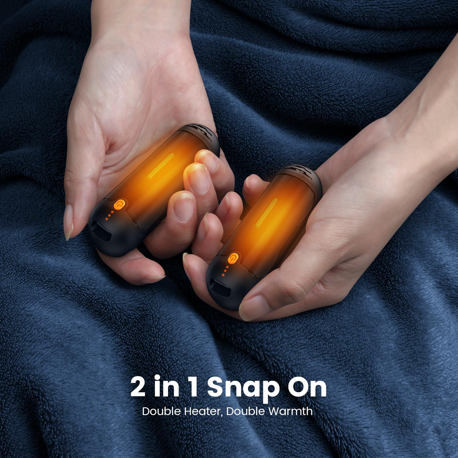 - 【2-in-1 DESIGN】 2023 newest 2 pack hand warmer attached together by snap, you can combine them to create a single palm-sized portable heater, or separate them to warm both hands, or share one heater to your family.