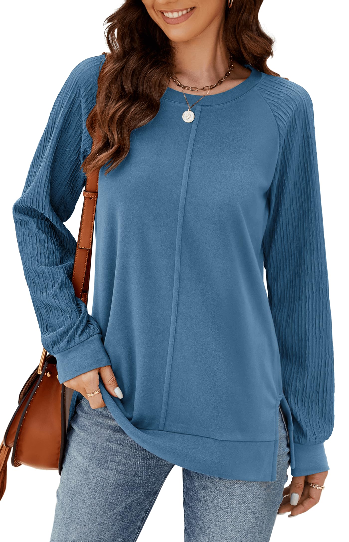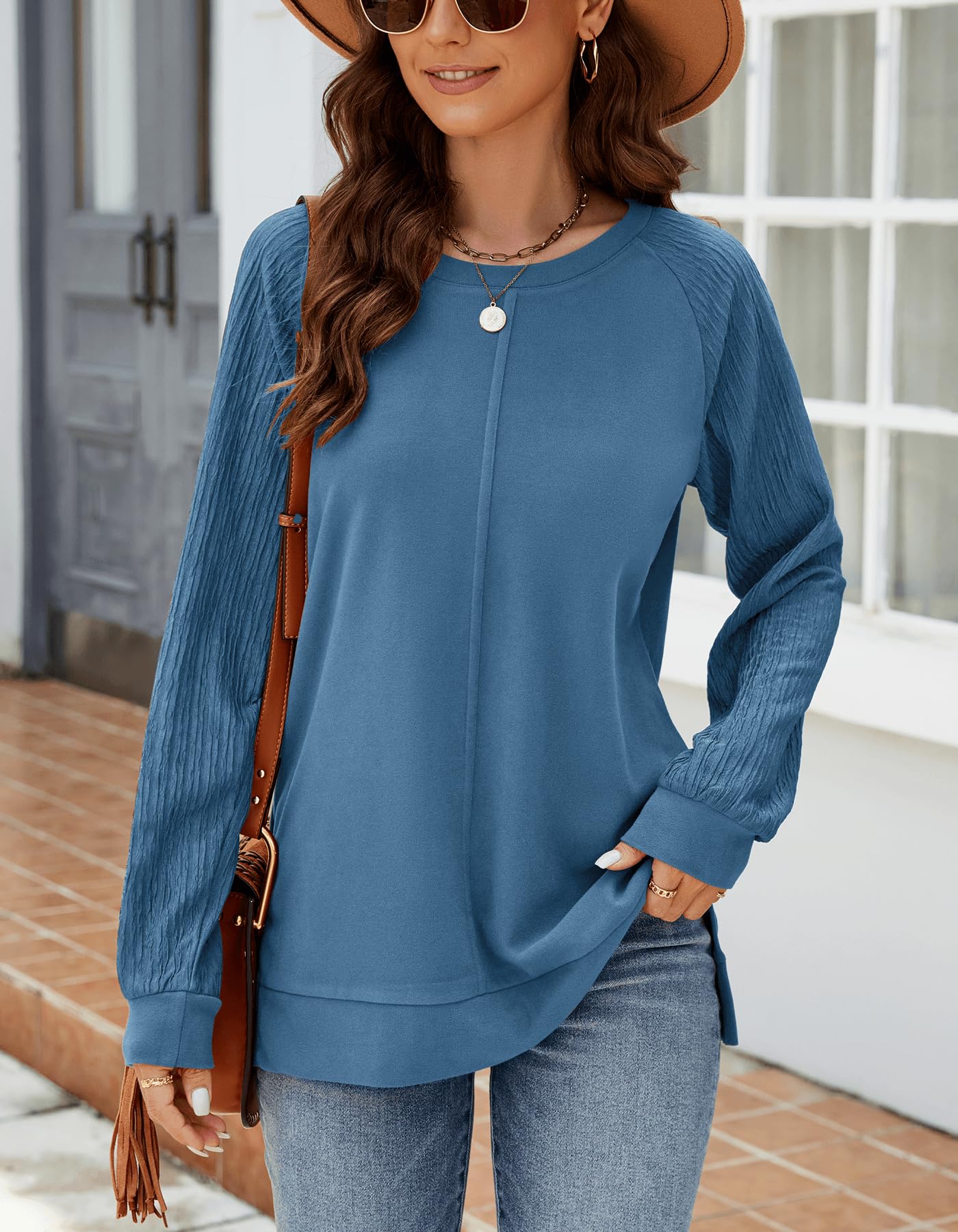 - Comfortable Texture for All-Day Wear: This crewneck sweatshirt women is made from a soft, breathable blend of 90% polyester and 10% spandex, featuring the latest textured fabric on the sleeves for added style and comfort. Whether for work or leisure, These casual tops for women ensure ease and comfort throughout the day.