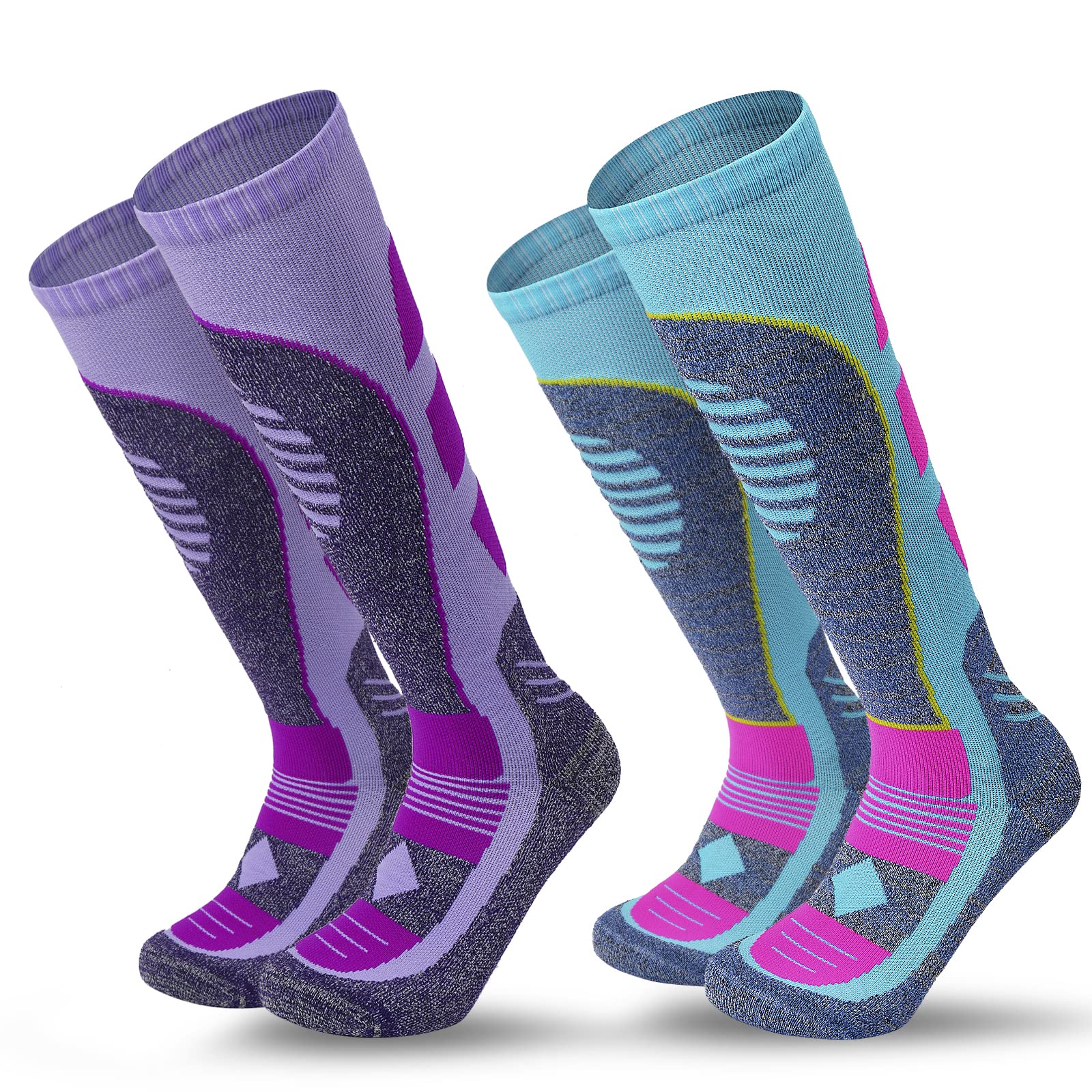 AII 2 pairs Athlete High Performance Unisex Knee Length Ski Socks For Men and Women, Winter Performance Socks,Snowboard socks