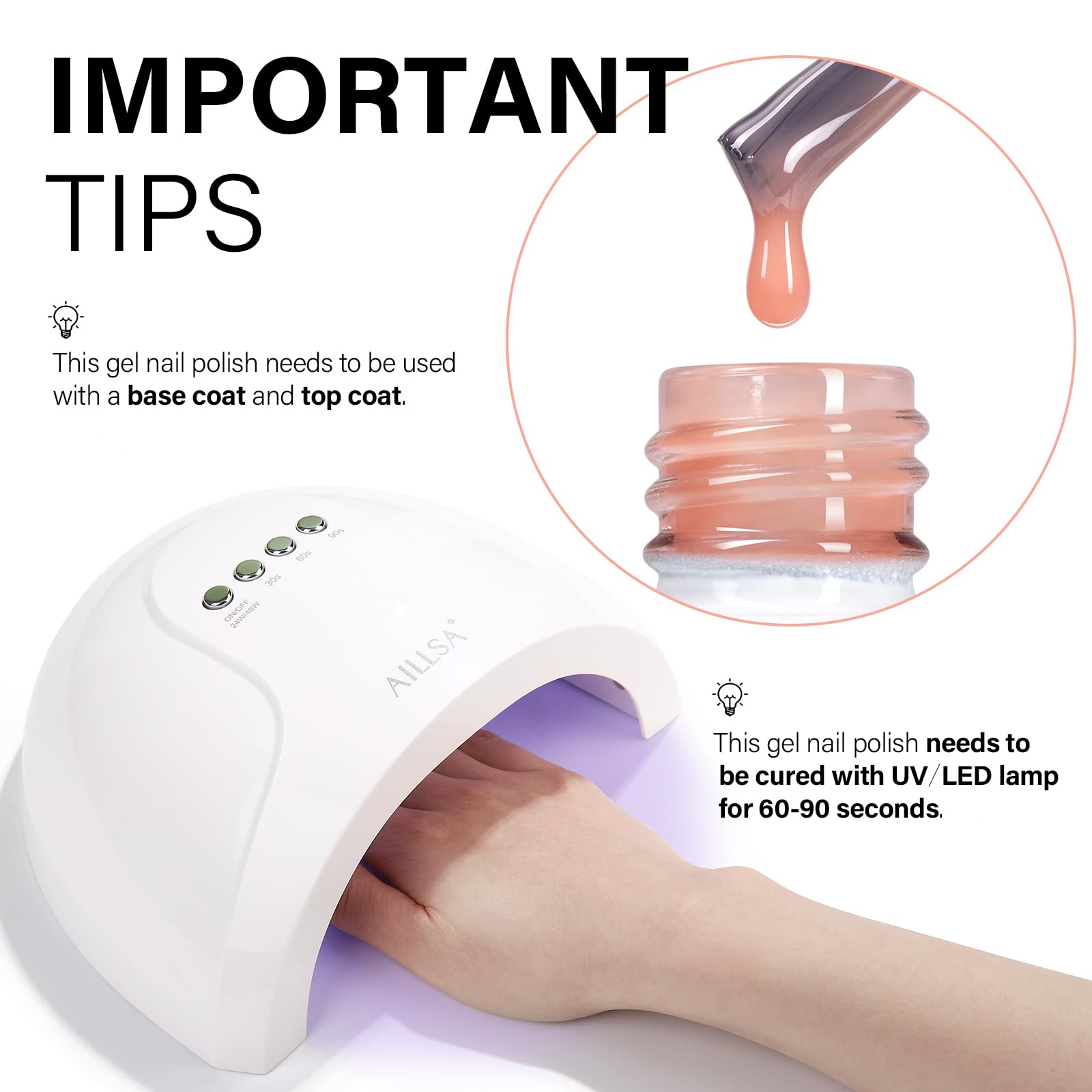 - LONG-LASTING SHINE - AILLSA jelly gel nail polish needs to be cured under L E D/U V light, under the correct use steps, it can last for 21-28 days and keep the shiny luster. You'll never have to worry about your nails peeling off while showering and doing housework. Let AILLSA serve you a longer time!