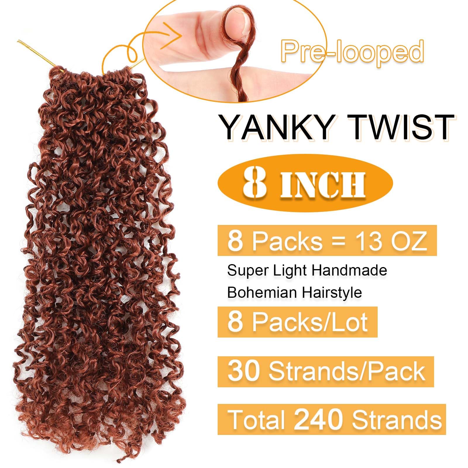 Aksice 8 Packs Yanky Twist Crochet Hair 8 Inch Pre-Twisted Passion Twist Spring Twist Hair with Curly Ends Pre-looped Crochet Braids Hair Extensions for Women (350#)