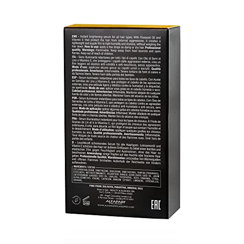 - PROFESSIONAL ITALIAN BEAUTY CARE: Formulated and made in Italy. Active ingredients include Flaxseed Oil, which give hair instant, long-lasting gloss and shine, and a Vitamin E Complex with antioxidant properties and benefits.