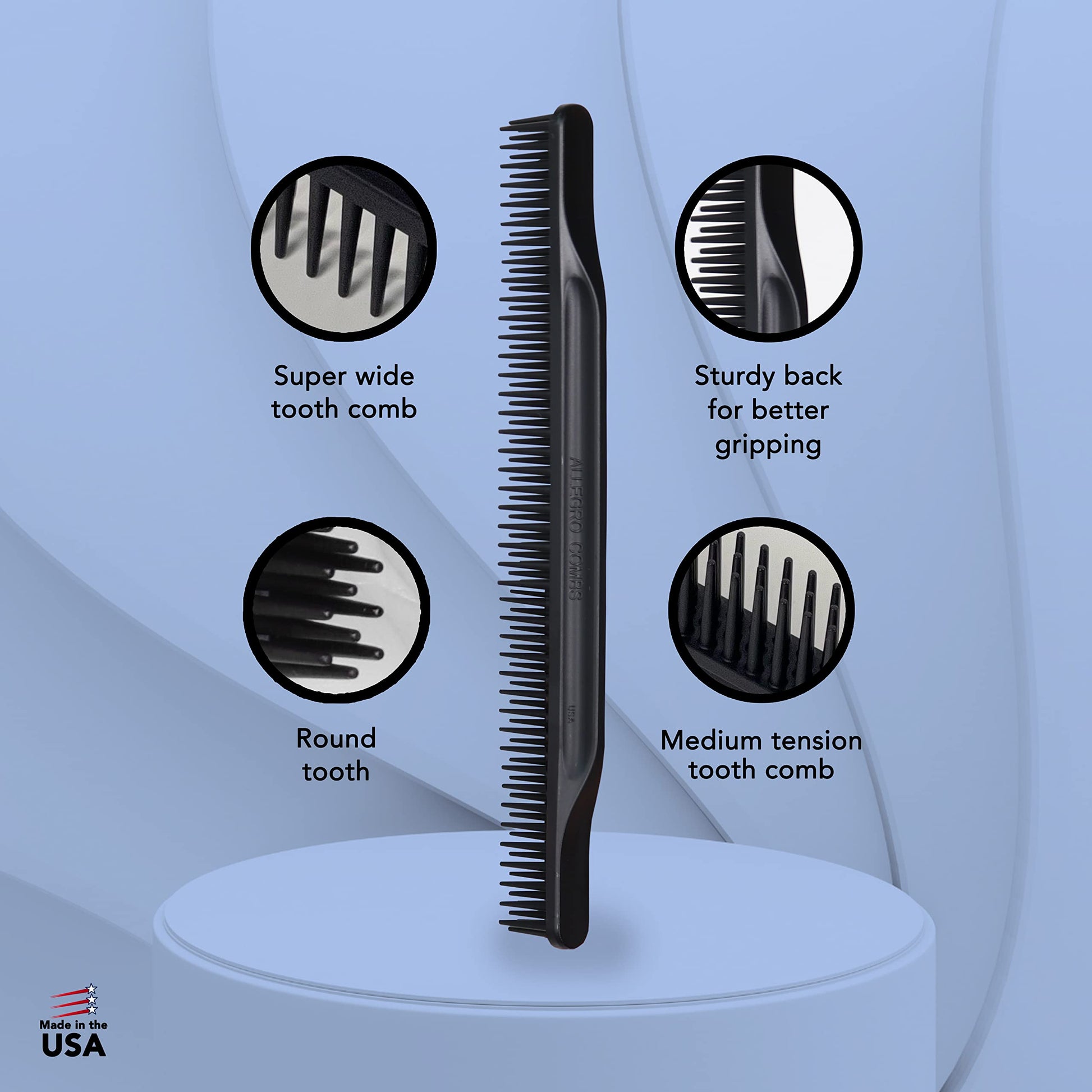 Allegro Combs 3-Row Detangling Comb #70 for Women's Curly Hair, Curl Defining, Wide Tooth, Made in USA, 1 Piece (Black)