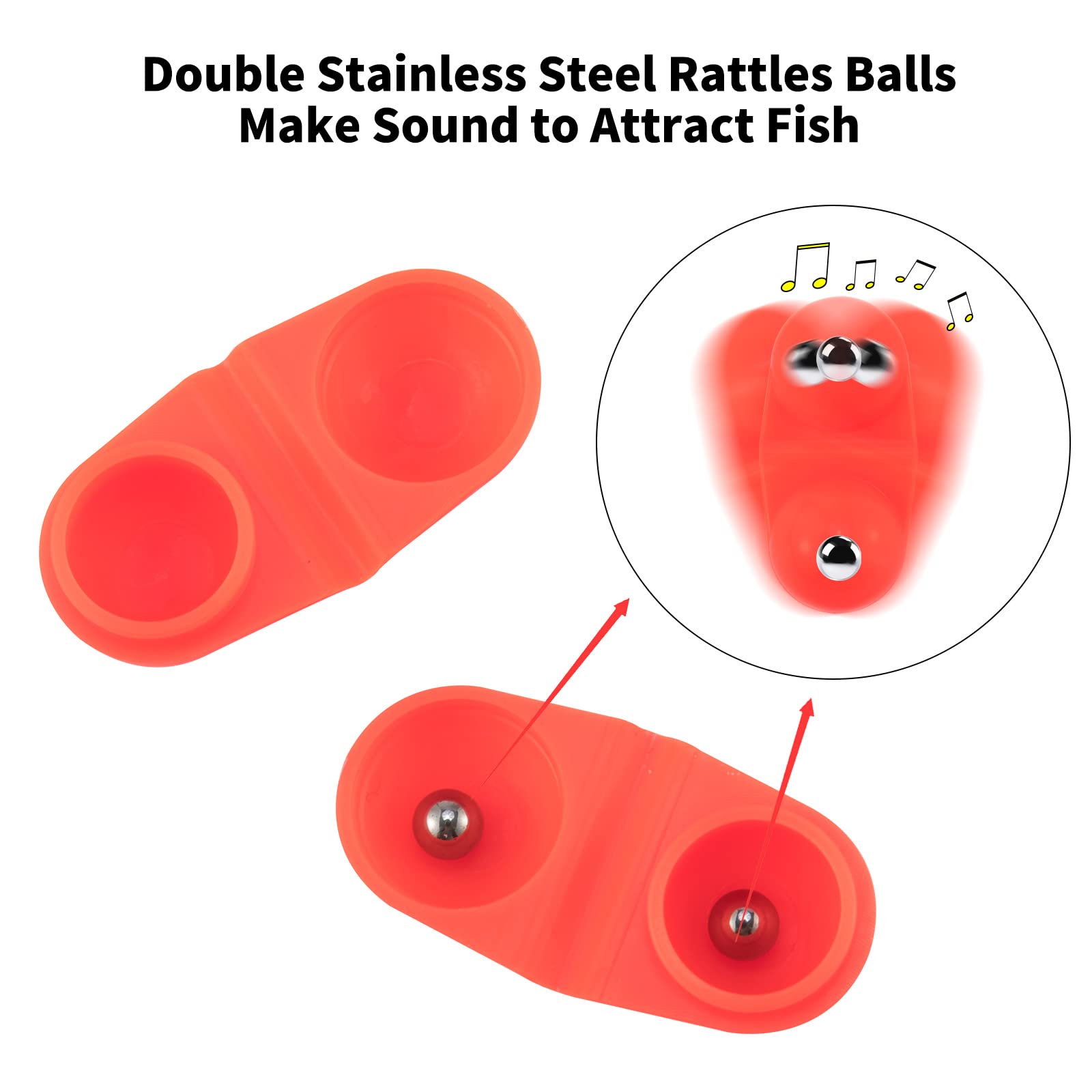 - 【Durable and Colorful】 Double rattles beads are made with high quality ABS plastic material, durable and hard. At the same time, they have colorful colors for visual stimulus, which is difficult for predatory fish to resist.