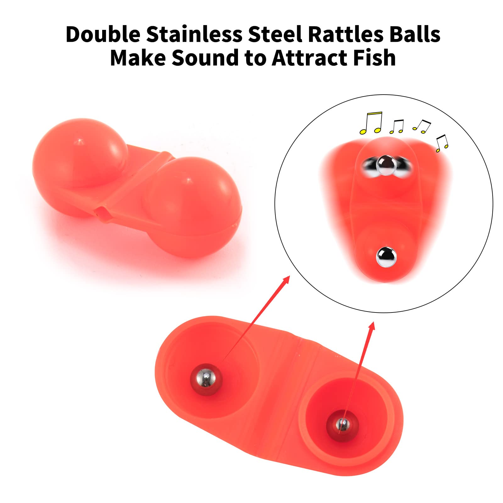- 【Double Rattle Balls】 Fishing double rattles beads have double stainless steel rattles balls inside for making louder sound to attract more fishes.
