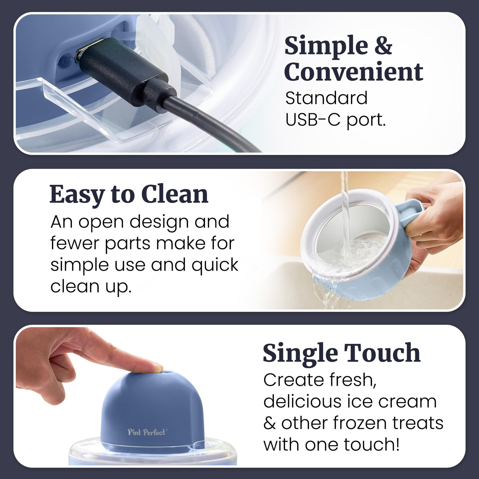 Americana by Elite Pint Perfect™ EIM1205DB Ice Cream Maker, 2 x 1 Pint Capacity Dual Freezing Mugs, Frozen Yogurt, Sorbet, Gelato, Recipes, Periwinkle