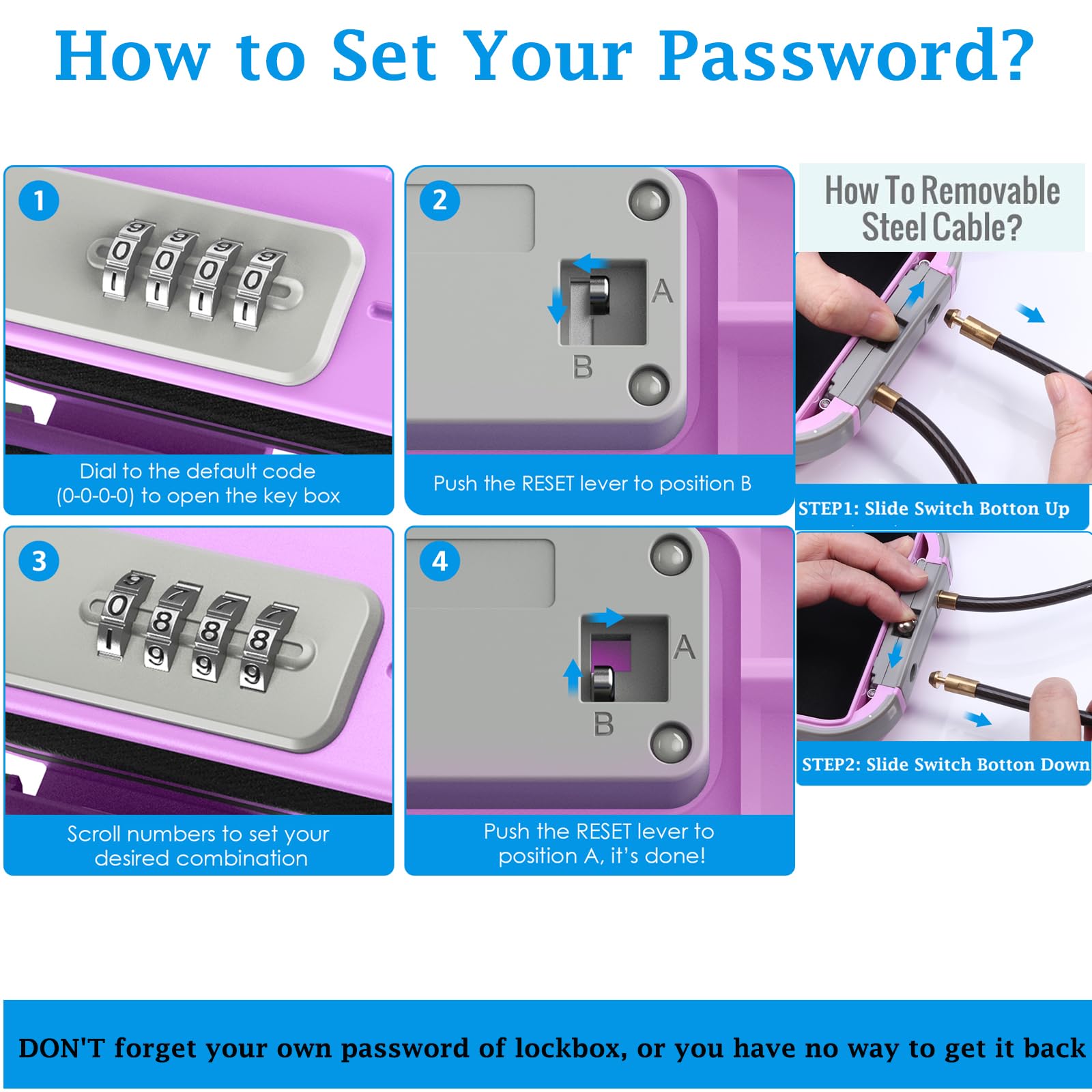 - ใ๐๐ข๐ ๐ก ๐๐๐๐ฎ๐ซ๐ข๐ญ๐ฒ ๐๐๐๐ ๐๐จ๐ฑใThis lockbox consists of 4-digit password combination, up to 10,000 combinations of passwords, easy to use and change passwords. The default combination is 0-0-0-0, which is easily reset to your own number. Please note that once the password is reset, it is best to take a photo to record it, otherwise there will be no way to open it again.