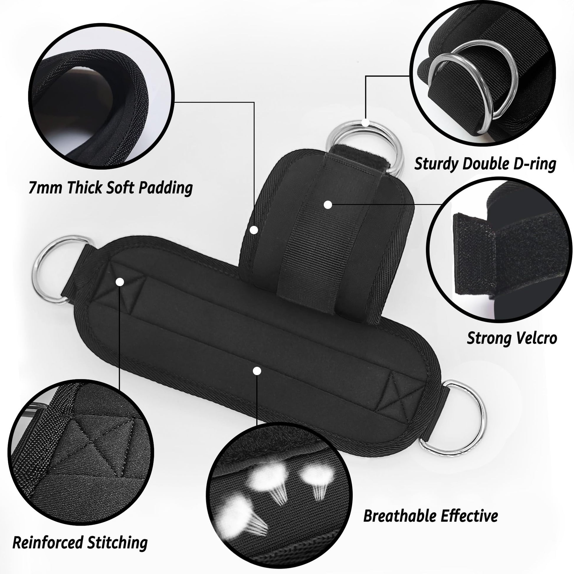 - Adjustable Cuff Fit All Ankle Size: Strong velcro strap secures the strap on ankles in comfort by rubber padding and soft ankle cuffs, One Size Fit, Ankle Cable Straps for Cable Machine, Ideal for Glutes Exercises